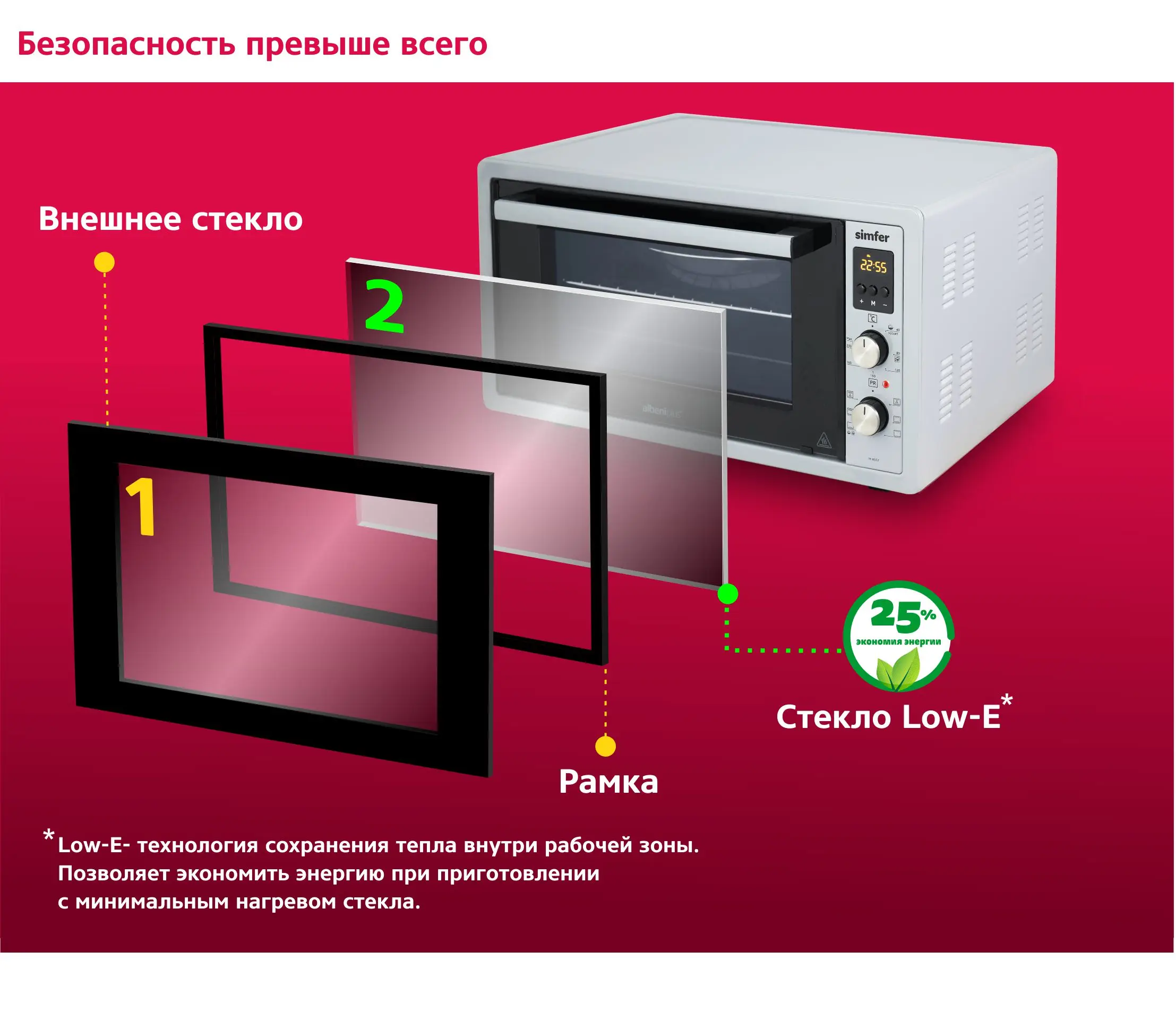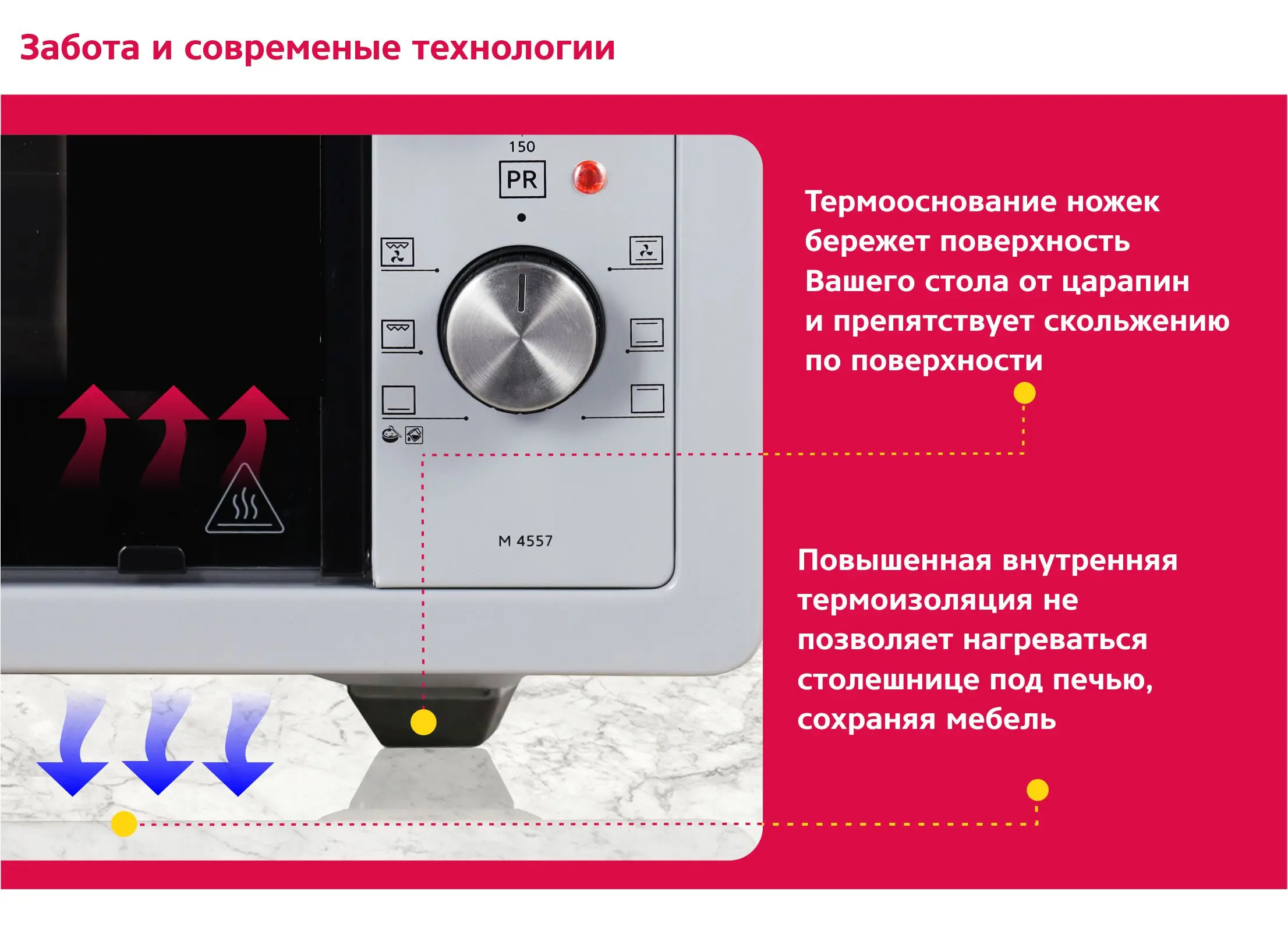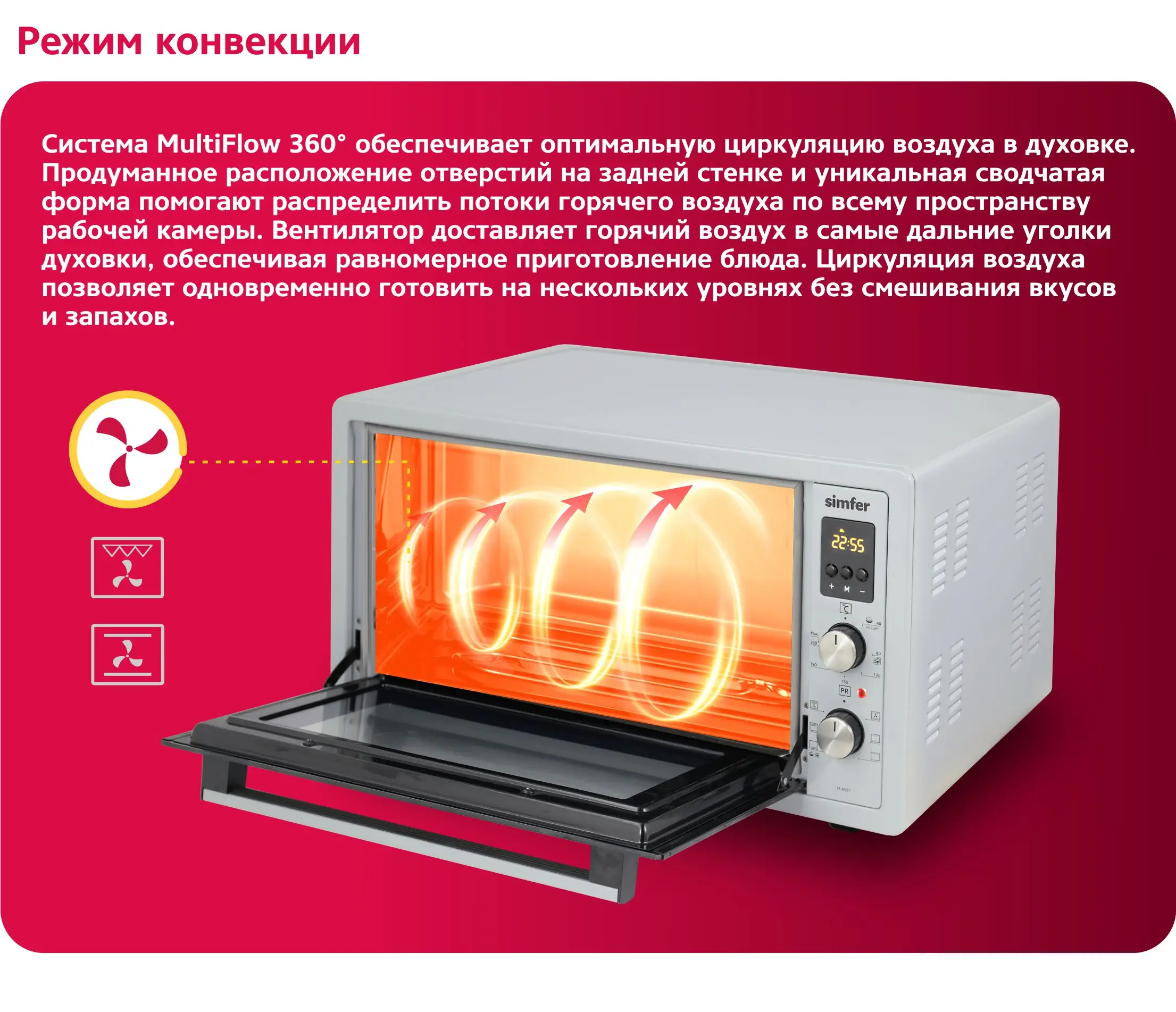 Мини-печь Simfer M4557 серия Albeni Plus Comfort, 5 режимов, конвекция, гриль, утапливаемые ручки