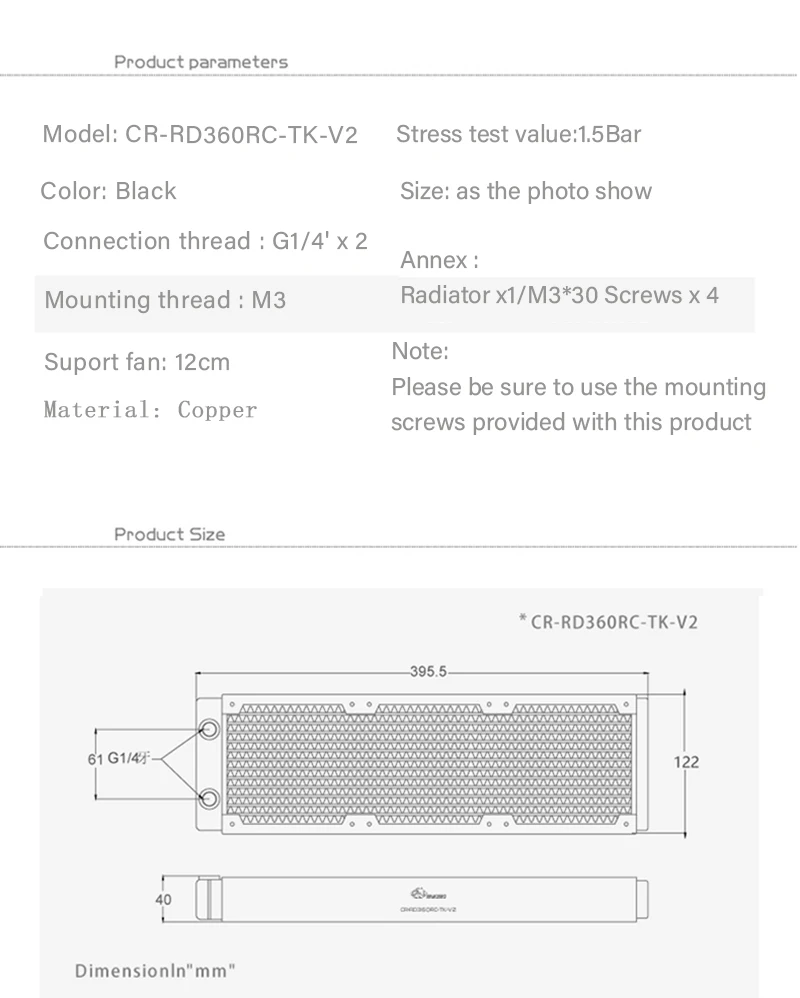 Медный радиатор BYKSKI 360 мм для охлаждения ПК, толщина 40 мм для вентилятора 12 см, кулер для воды, высокопроизводительный кулер, вентилятор 120 мм