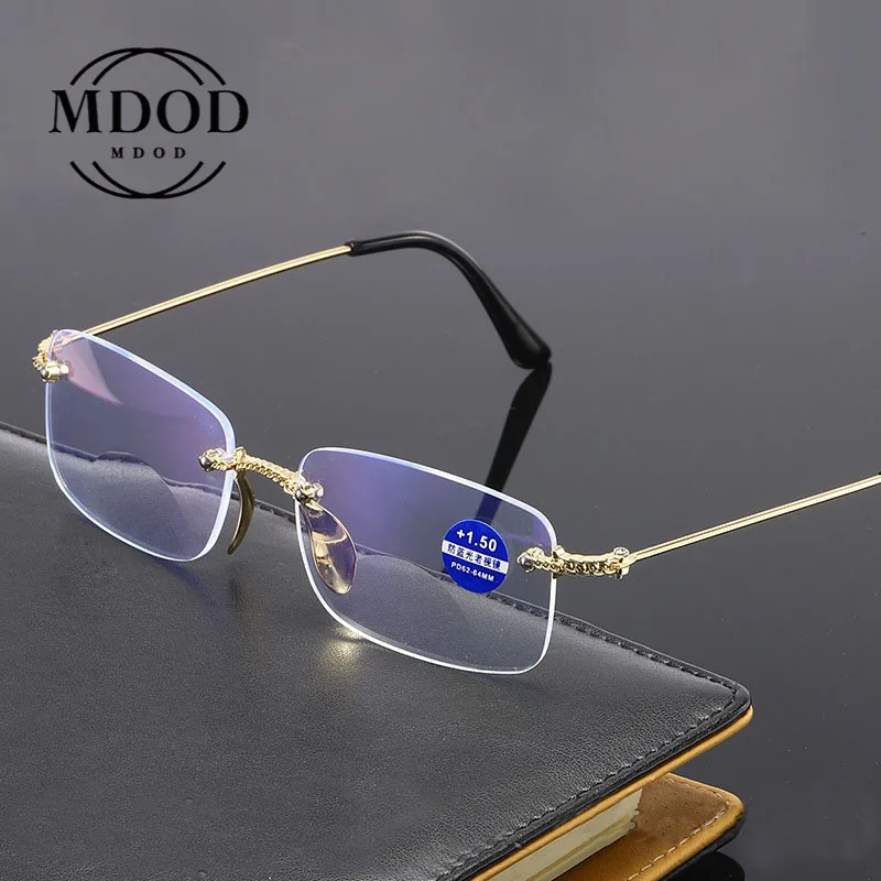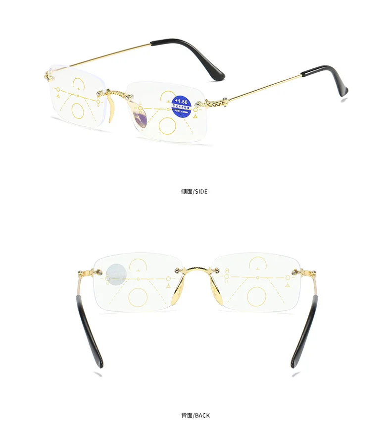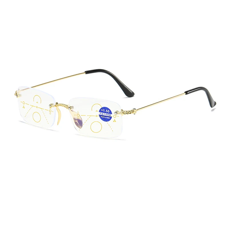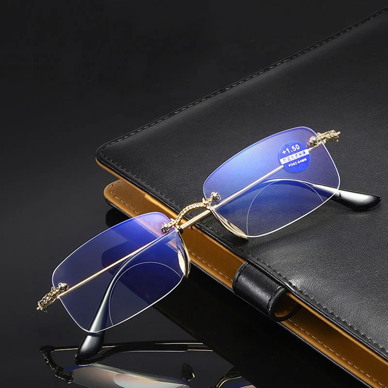 Модные очки для чтения с защитой от синего излучения бифокальные многофокальные линзы постепенно бескаркасные металлические оправа плоские очки для чтения