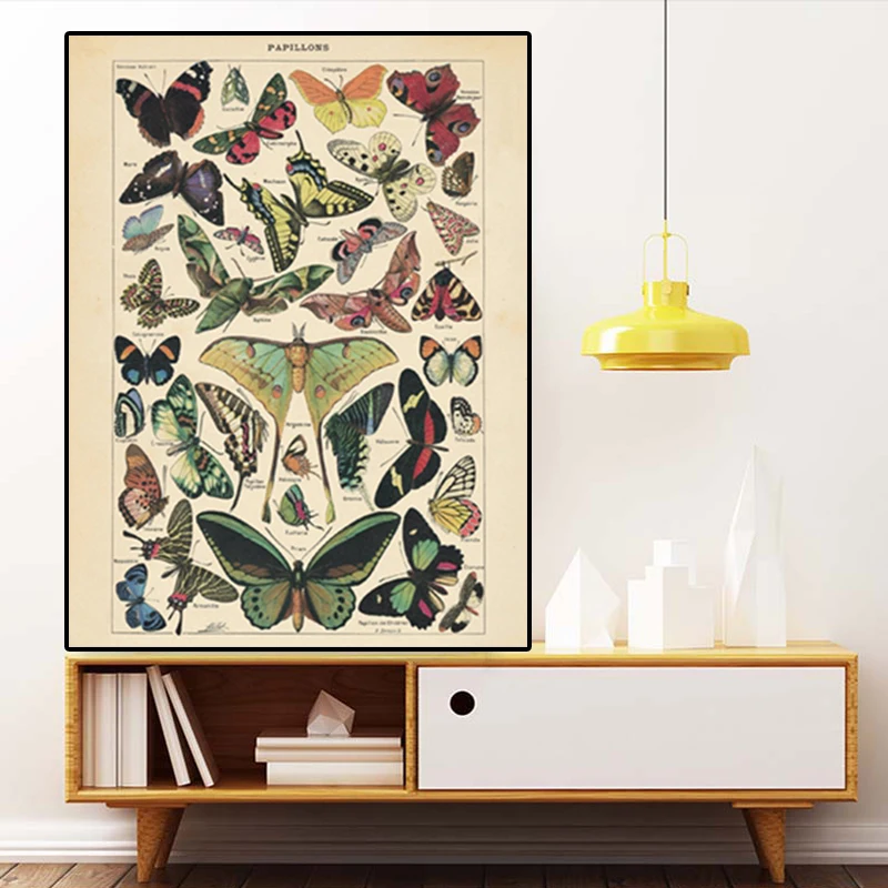 Винтажный постер в античном стиле с изображением бабочки, насекомых, природный вид, обучение, холст, живопись, плакаты и принты, настенное искусство для комнаты, домашний декор