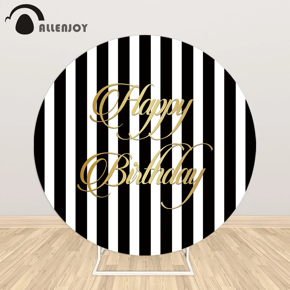 Allenjoy черный белый полосатый день рождения вечевечерние НКА Круглый круглый фон пользовательский фон Свадьба невесты Baby Shower Конфеты стол Крышка