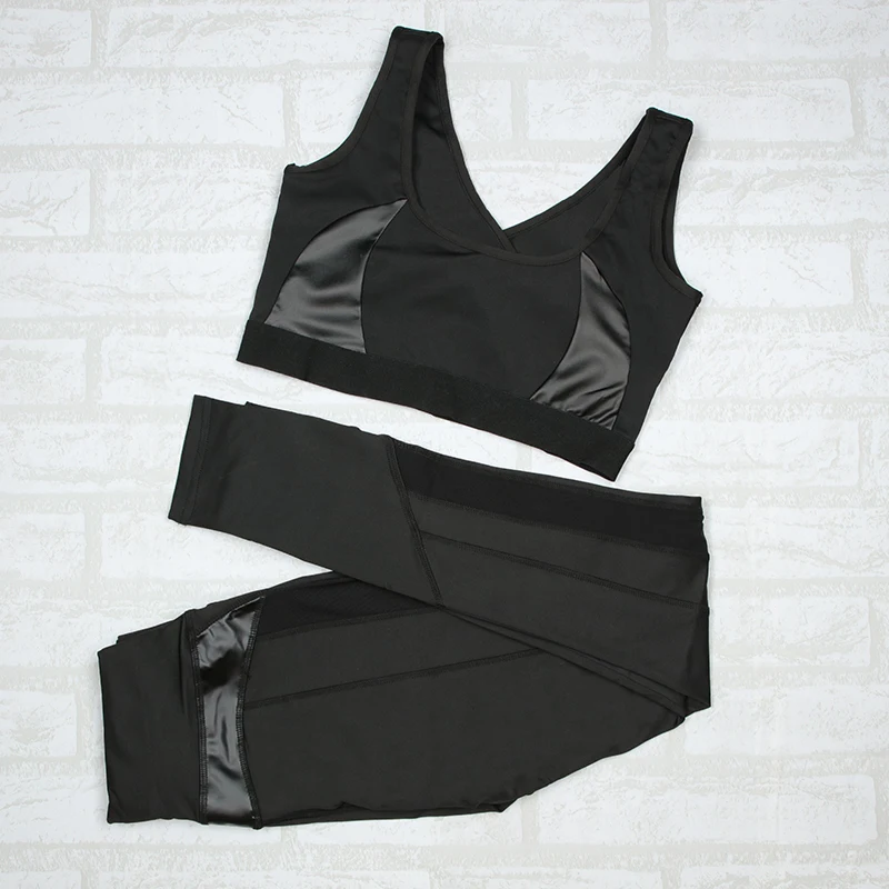 Женский комплект из двух предметов ATHVOTAR, черный сексуальный бюстгальтер с высокой талией, леггинсы, сетчатый лоскутный спортивный костюм, женский комплект для тренировок