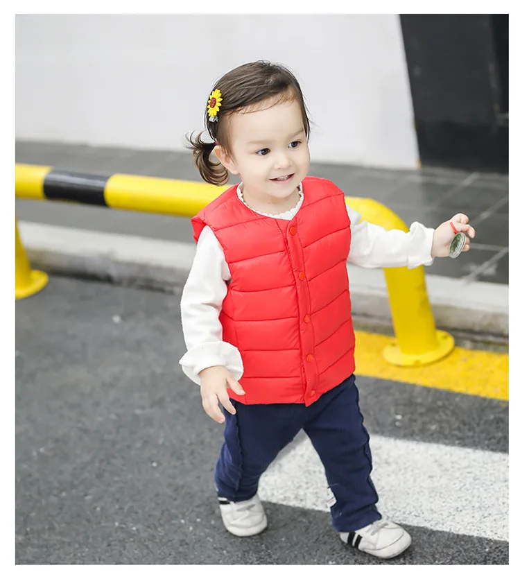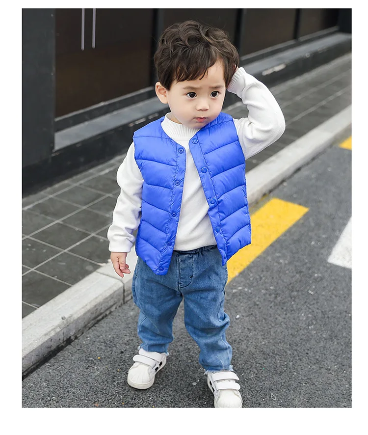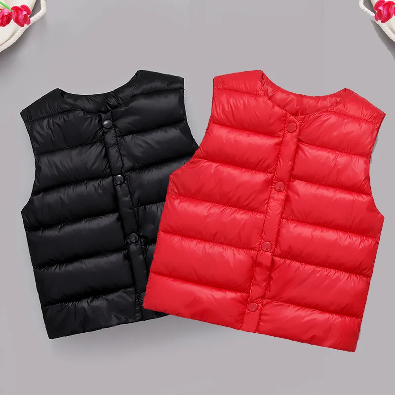 Жилет детский зимний без рукавов, с круглым воротником, для мальчиков и девочек