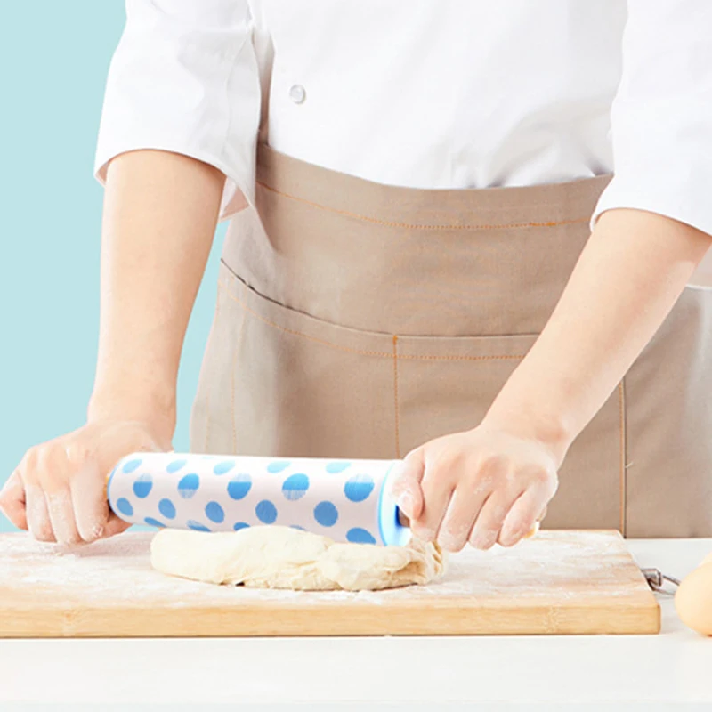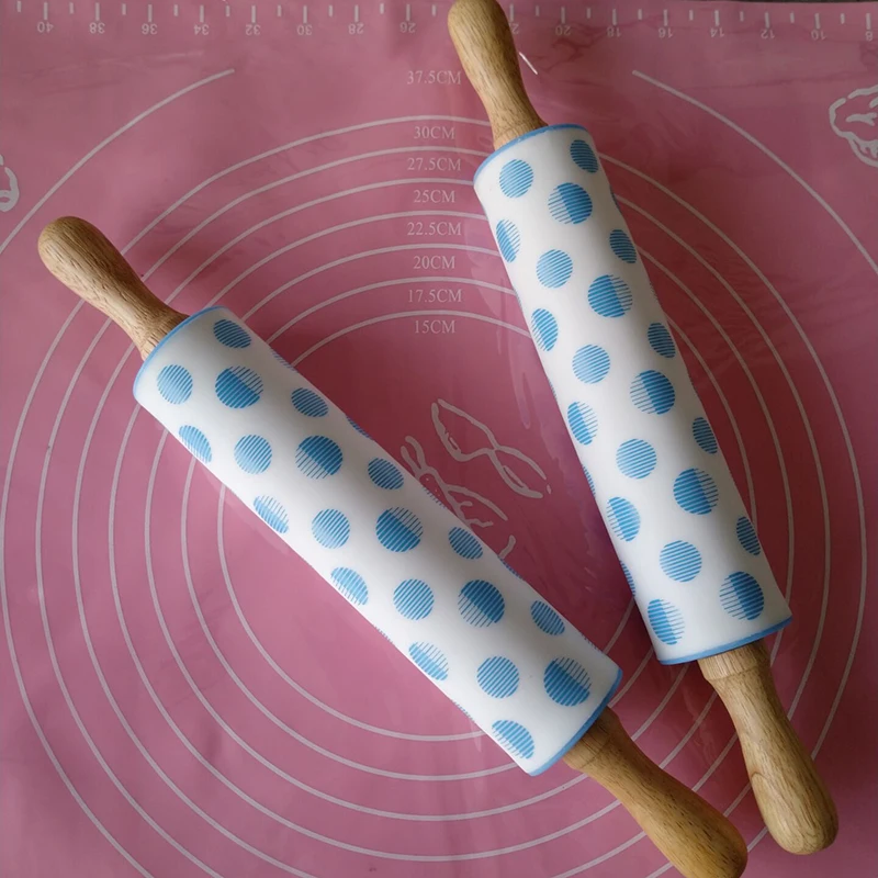 12 дюймов с антипригарным покрытием Скалка с деревянной ручкой для выпечки теста напольный ролик кухня выпечки инструменты для приготовления пищи, в горошек, с рисунком скалки
