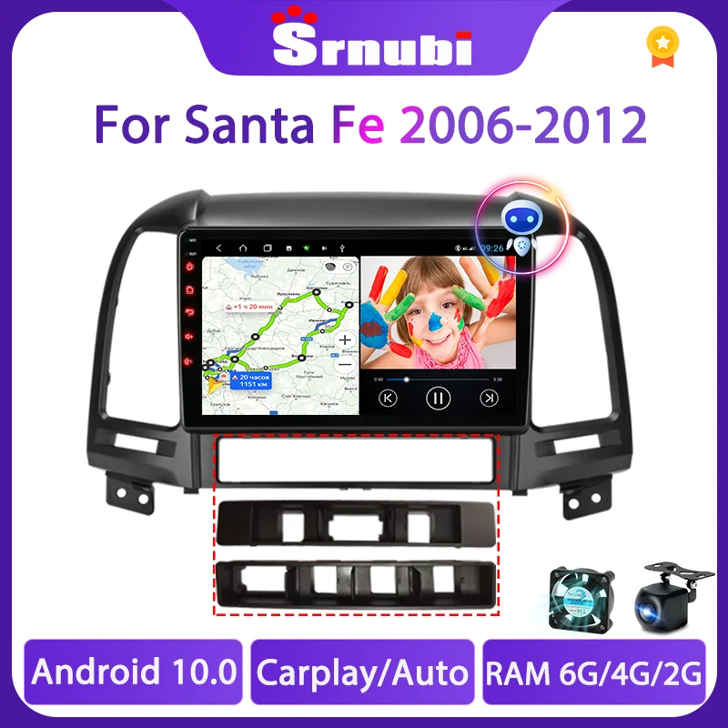 Автомобильный радиоприемник Srnubi Android 10 Carplay для Hyundai Santa Fe 2006 - 2012 2Din мультимедийный видеоплеер GPS навигация Стерео DVD