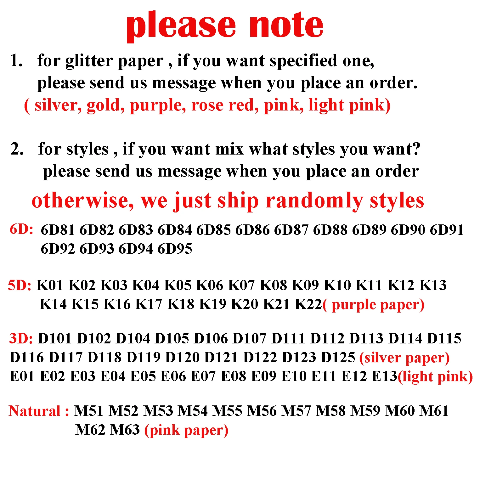 3D: D101 D102 D104 D105 D106 D107 D111 D112 D113 D114 D115 D116 D117 D118 D119 D120 D121 D122 D123 D124 D125 (silver paper )E01 E02 E03 E04 E05 E06 E07 E08 E09 E10 E11 E12 E13 (light pink paper)