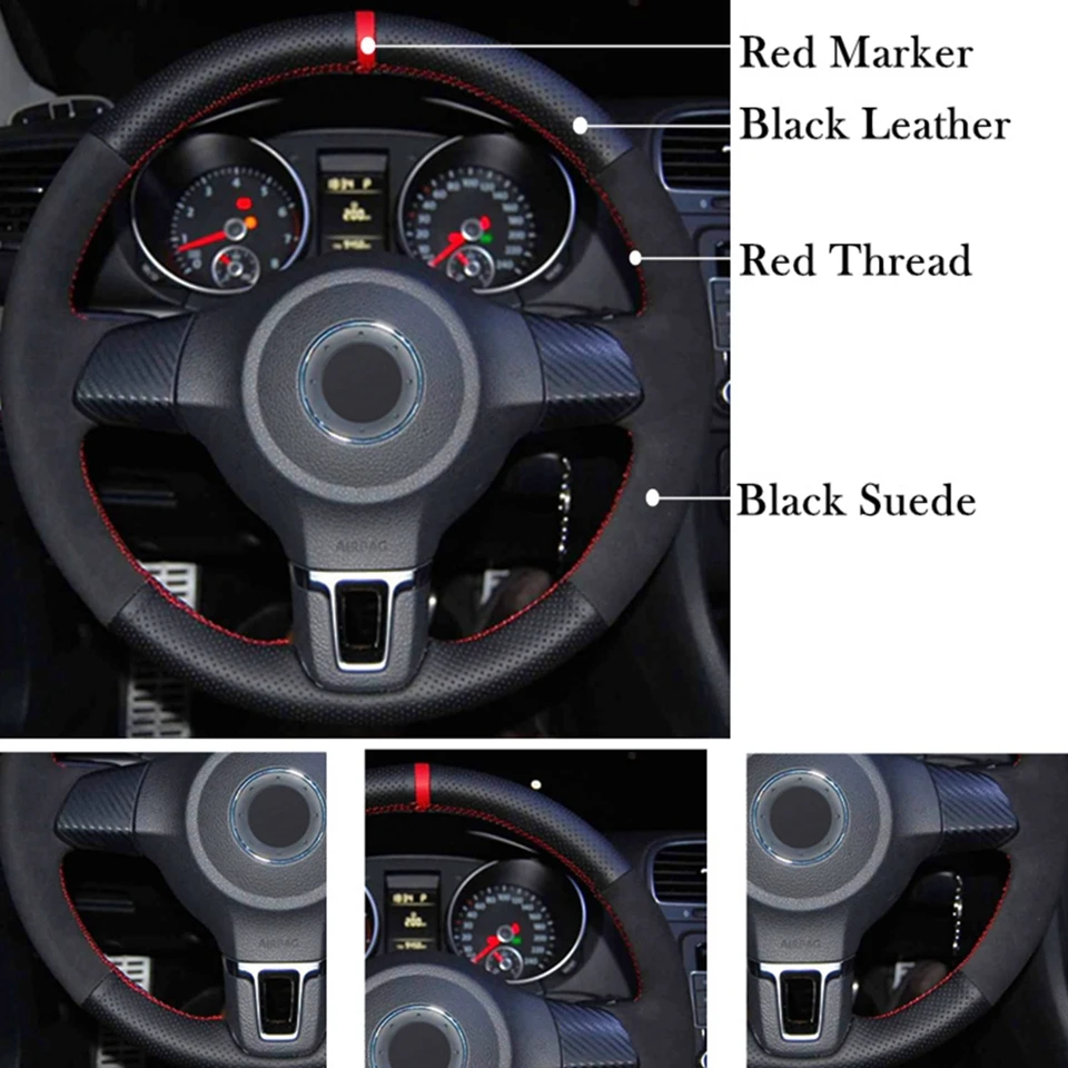 Чехол для руля, черный замшевый, для Volkswagen Golf 6 GTI MK6 VW P...