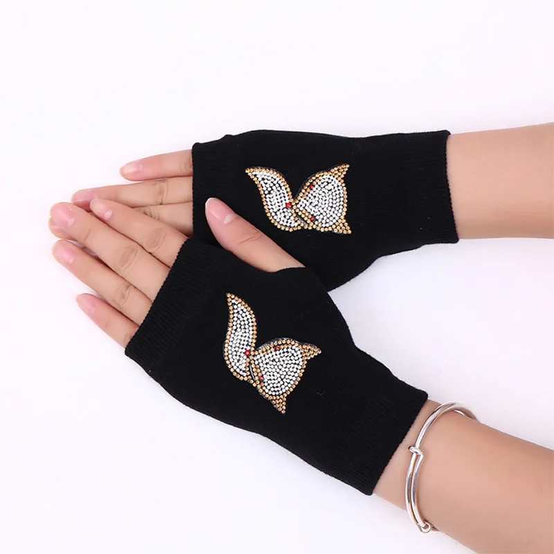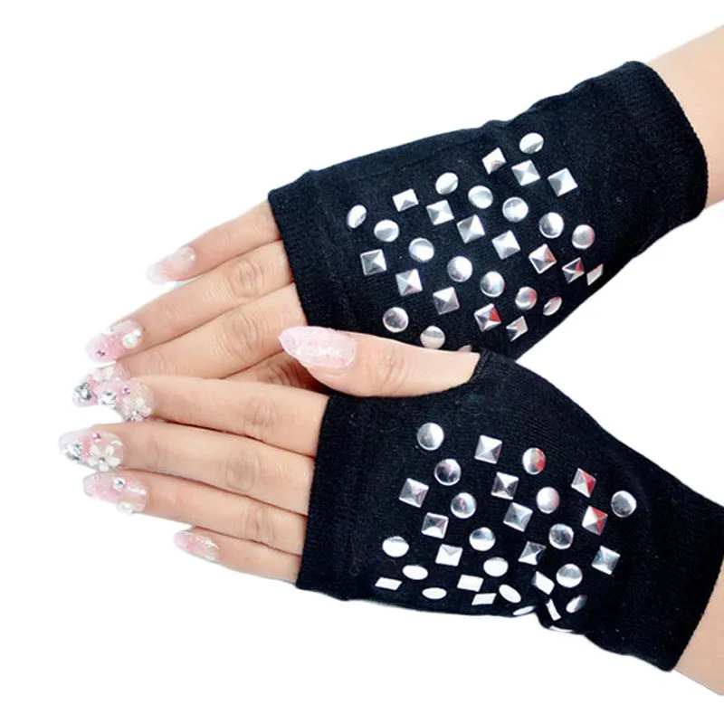 Новые модные черные перчатки шерстяные перчатки для вождения в стиле Панк Стразы Короткие перчатки в стиле хип-хоп женские зимние теплые перчатки