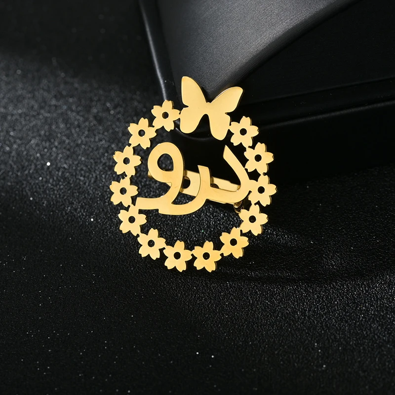 Наименование товара: нержавеющая стальИзготовленный на заказИменные Броши с бабочкой и цветком