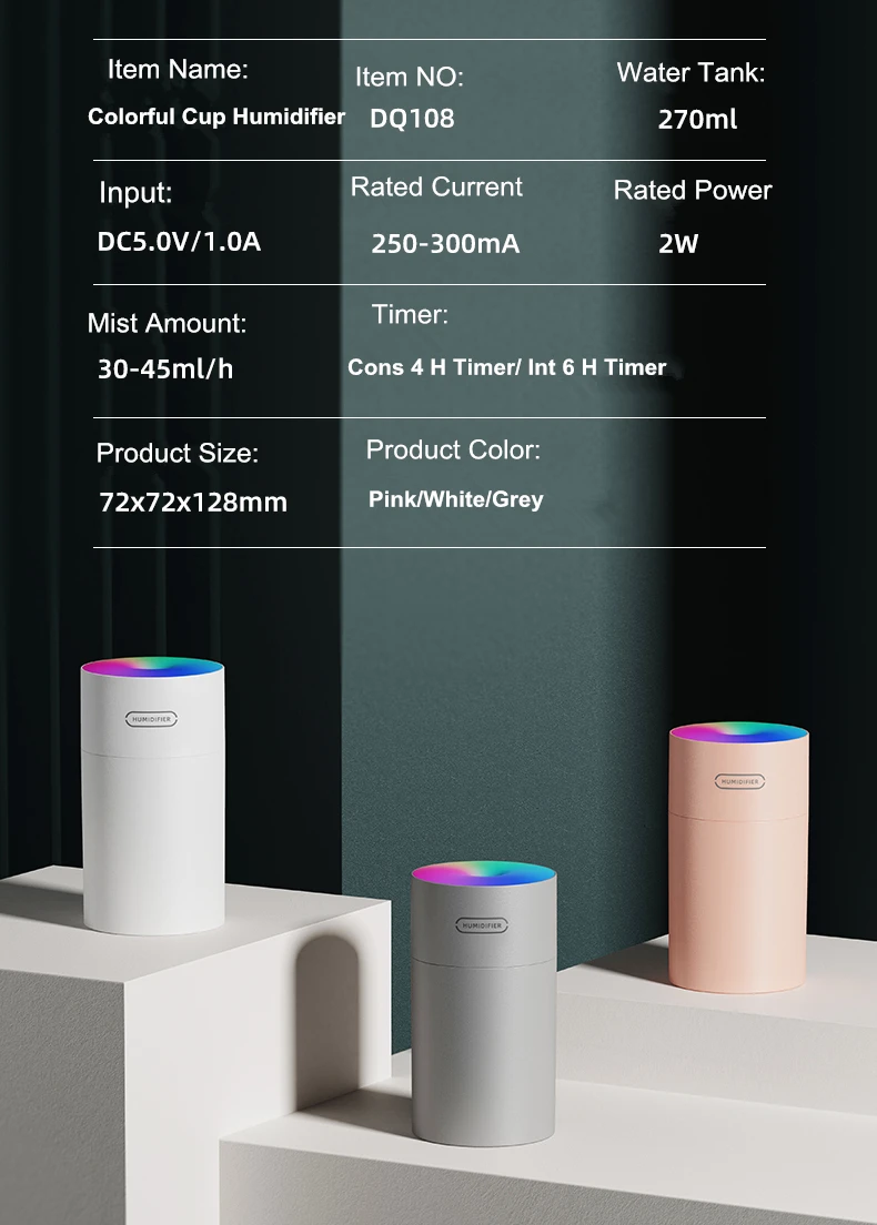 Название продукта: ультразвуковой увлажнитель воздуха с красочными чашками 270 мл
