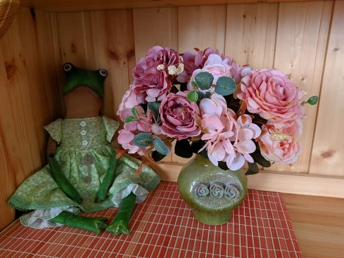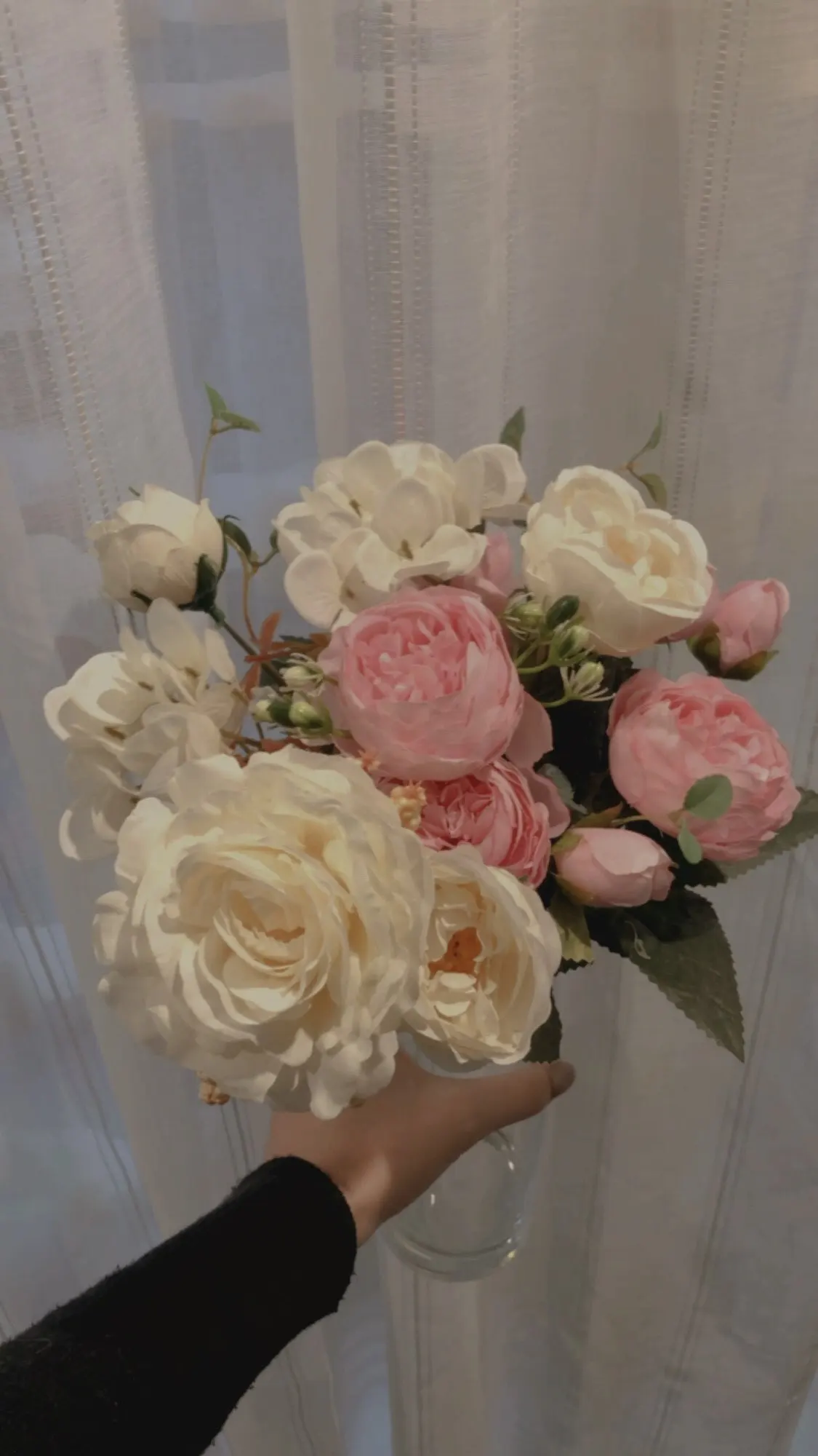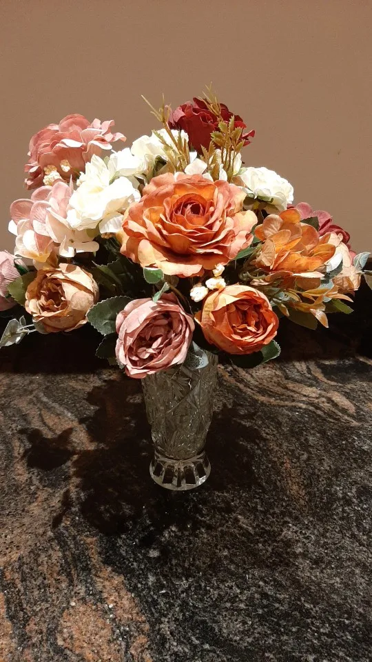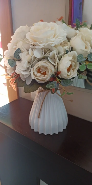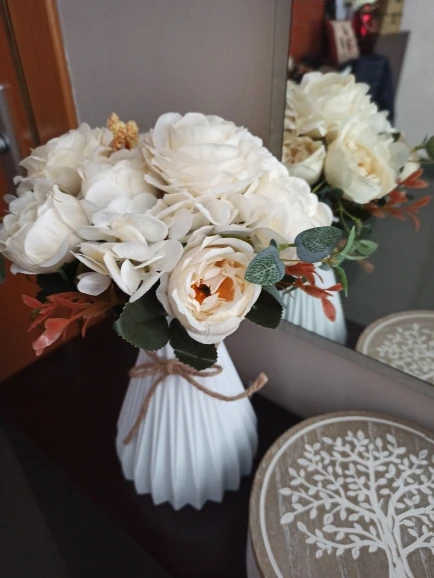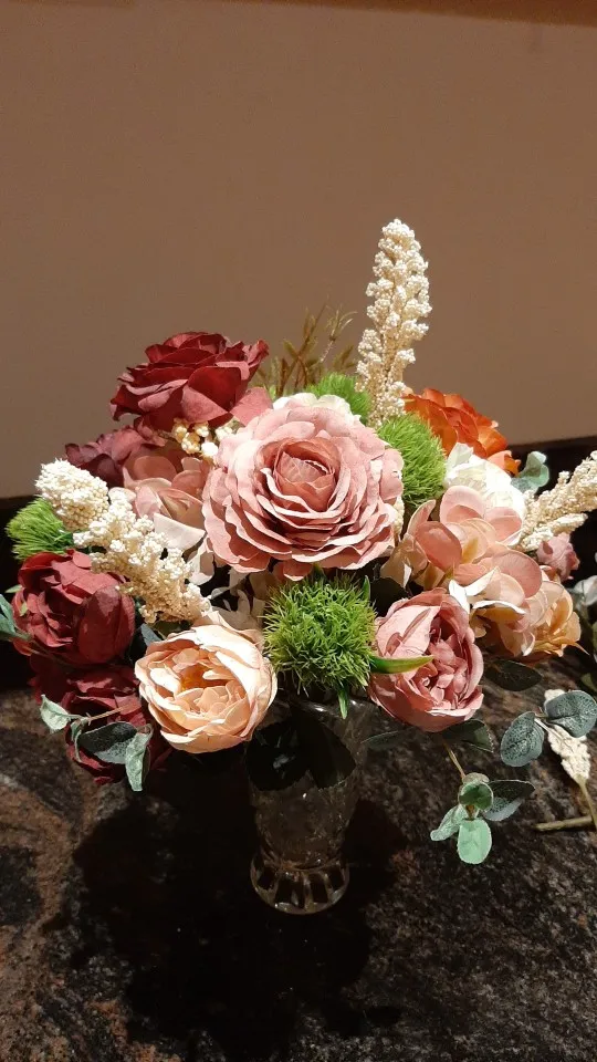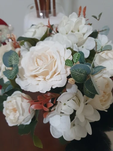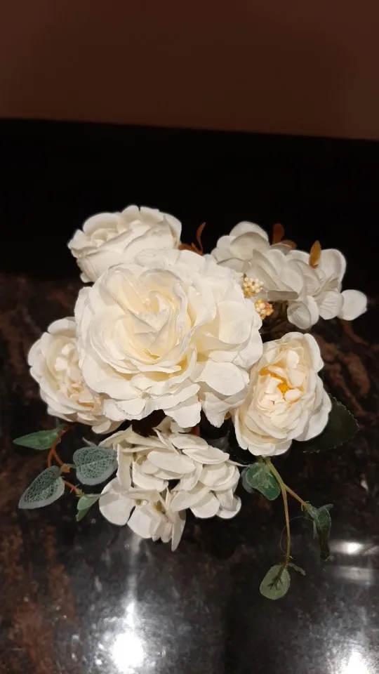 отличный букет! брала по купону, доставка 4 недели. в пути чуть помялся, выправляется легко, без запаха. розы и пионы в стиле шебби-шик реалистичны, стебли и листья пластиковые. недочёт один - слетают цветы гортензии, так очень понравился. товар и продавца рекомендую