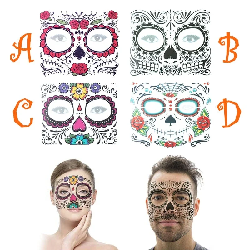 Высококачественный материал:Макияж с сахарным черепом водостойкий, приятный для кожи и съемный, держится 2-5 дней.