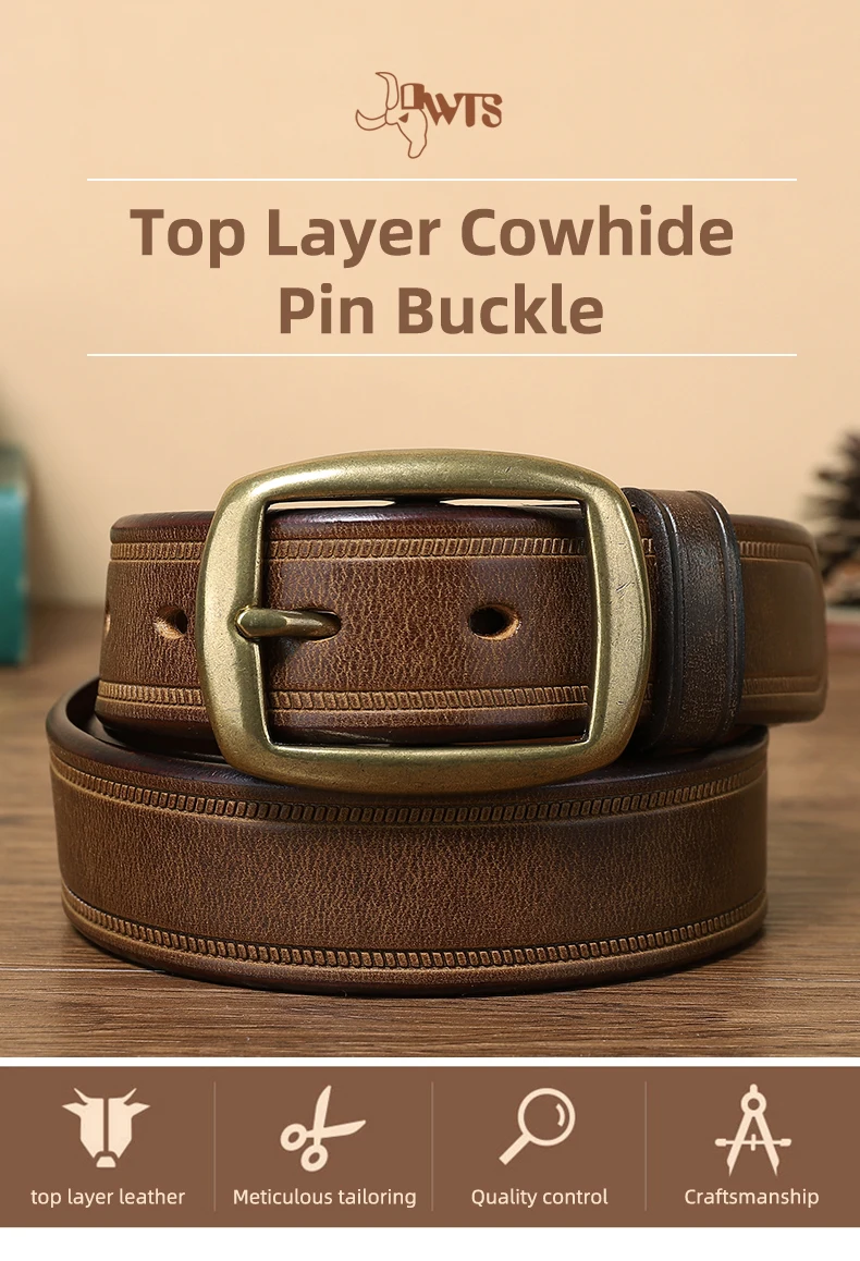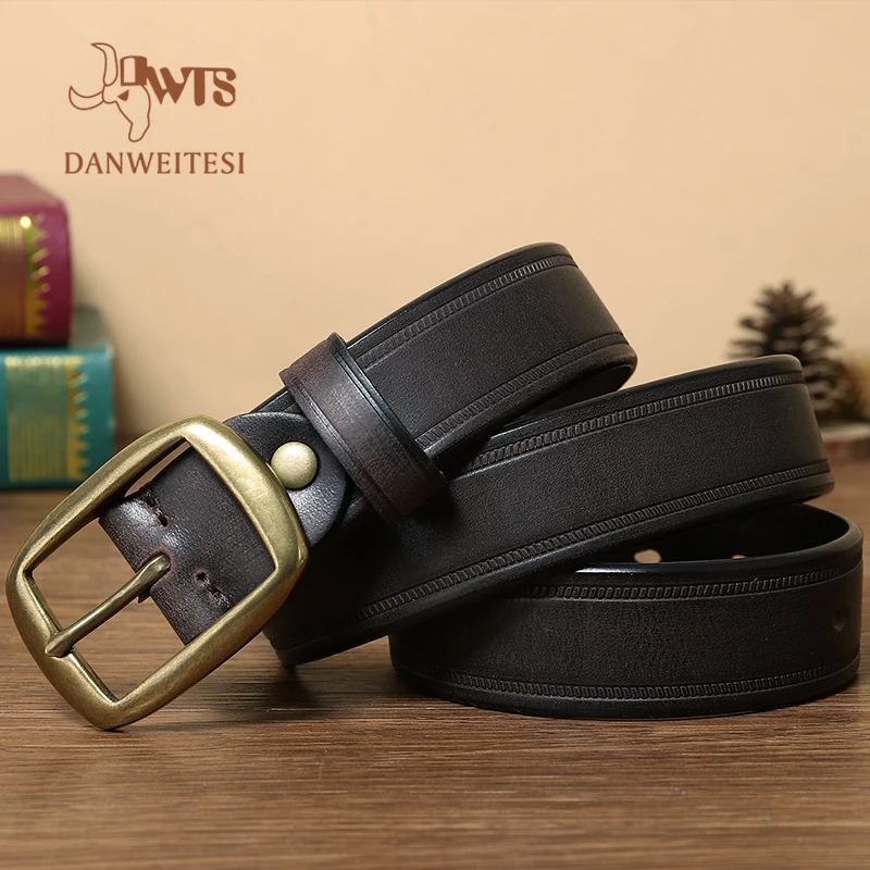 Мужской кожаный ремень DWTS, черный деловой ремень из натуральной кожи с роскошной пряжкой с язычком, в винтажном стиле, для джинсов
