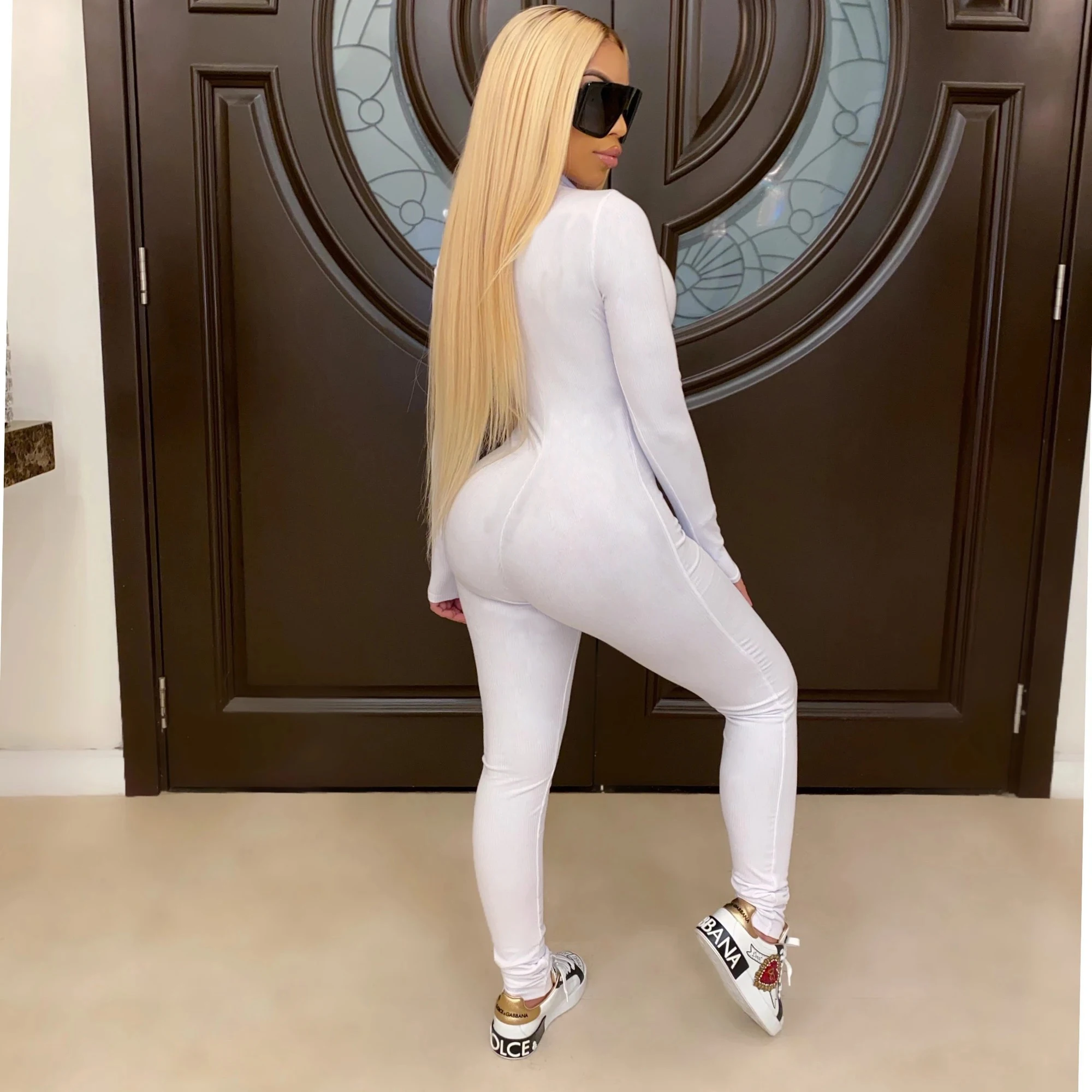 Комбинезон женский на молнии с длинным рукавом, однотонный пикантный облегающий элегантный спортивный Ромпер для фитнеса, комбинезон на осень