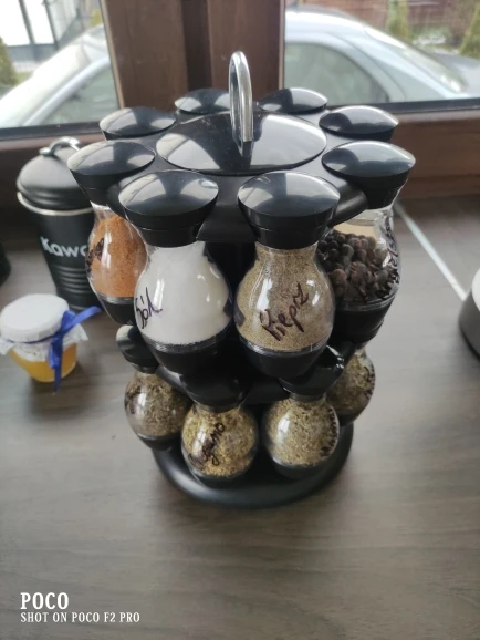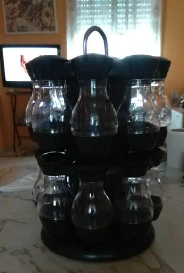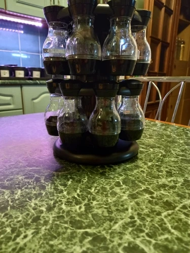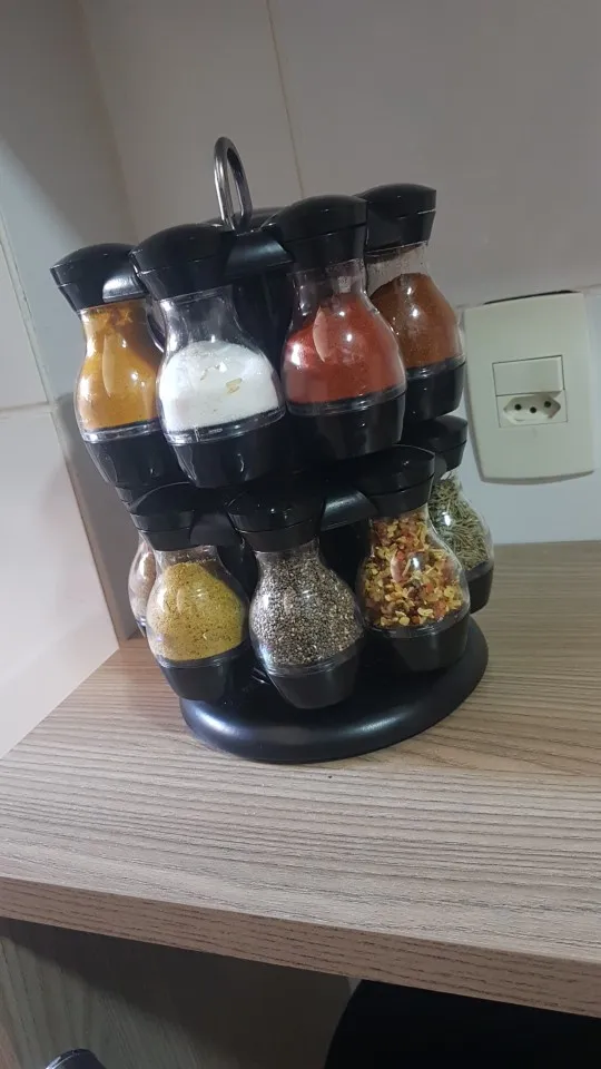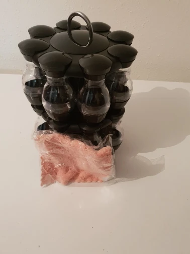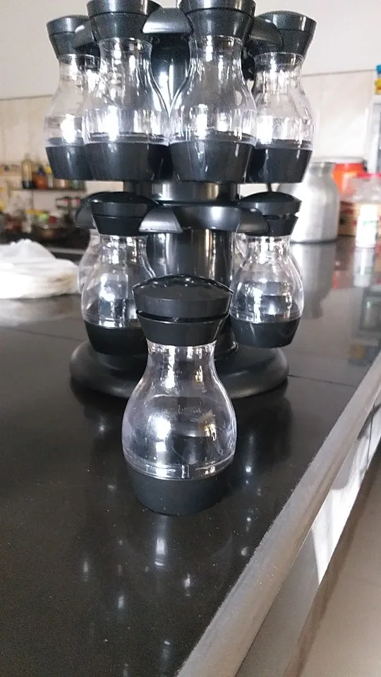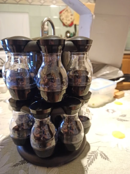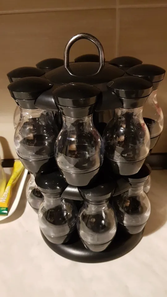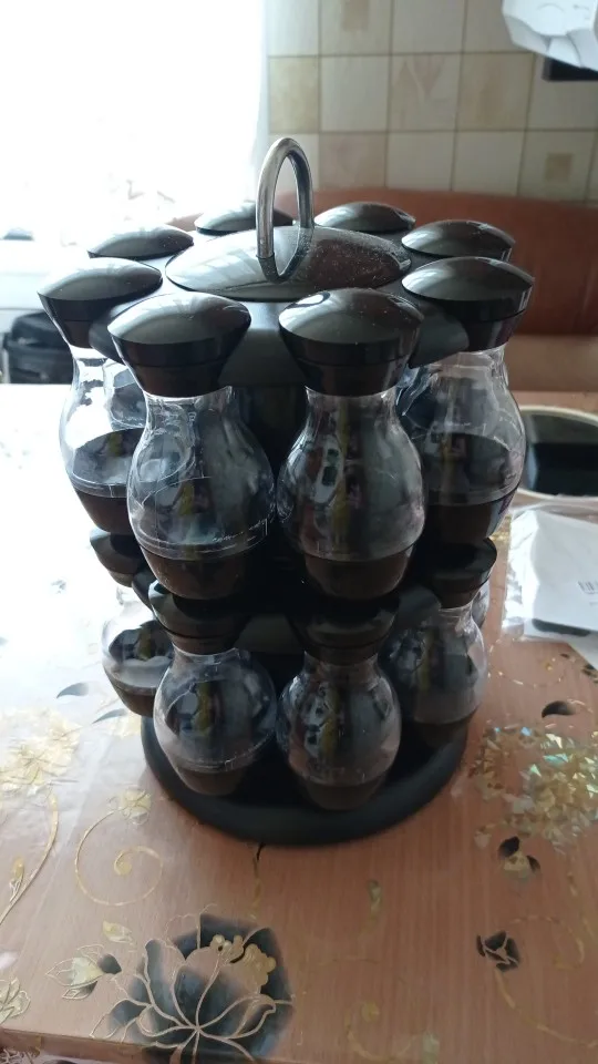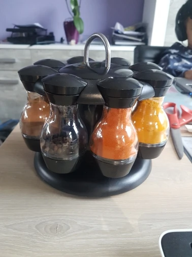 Внешний вид как на картинке, но.... Качество пластиковых контейнеров плохое. Все еще не используется и уже поцарапается. Каждый имеет одно и то же отверстие для распределения, что делает некоторые приправы туго, и другие нуждаются много раз встряхнуть.