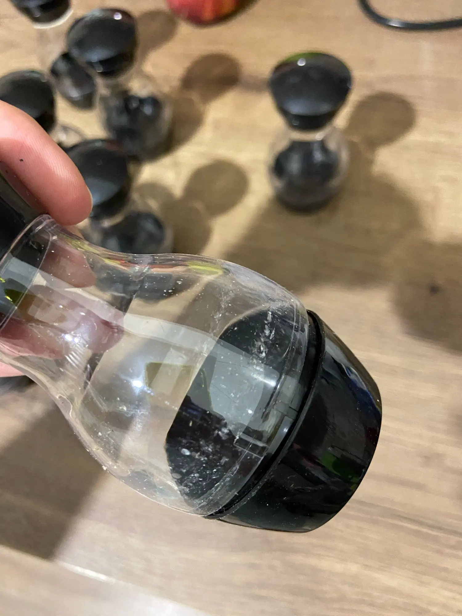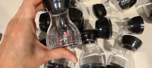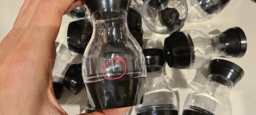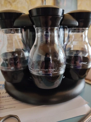 Нижняя часть. не имеет резьбы, держится на честном слове. на фото видны сильна щель. И это на каждой банке. То есть мелкое что то просыплится. Защиты никакой не было. просто коробка в пакете. Коробка вся мятая. Но это претензия к почте. Но то что нет защиты претензия к продавцу. Качество изделия на 3 из 5. На фото все намного лучше. Засыпать приправы не удобно. Но за 1450р сойдёт. Если бы не щель внизу и была резьба снизу была бы 4+.