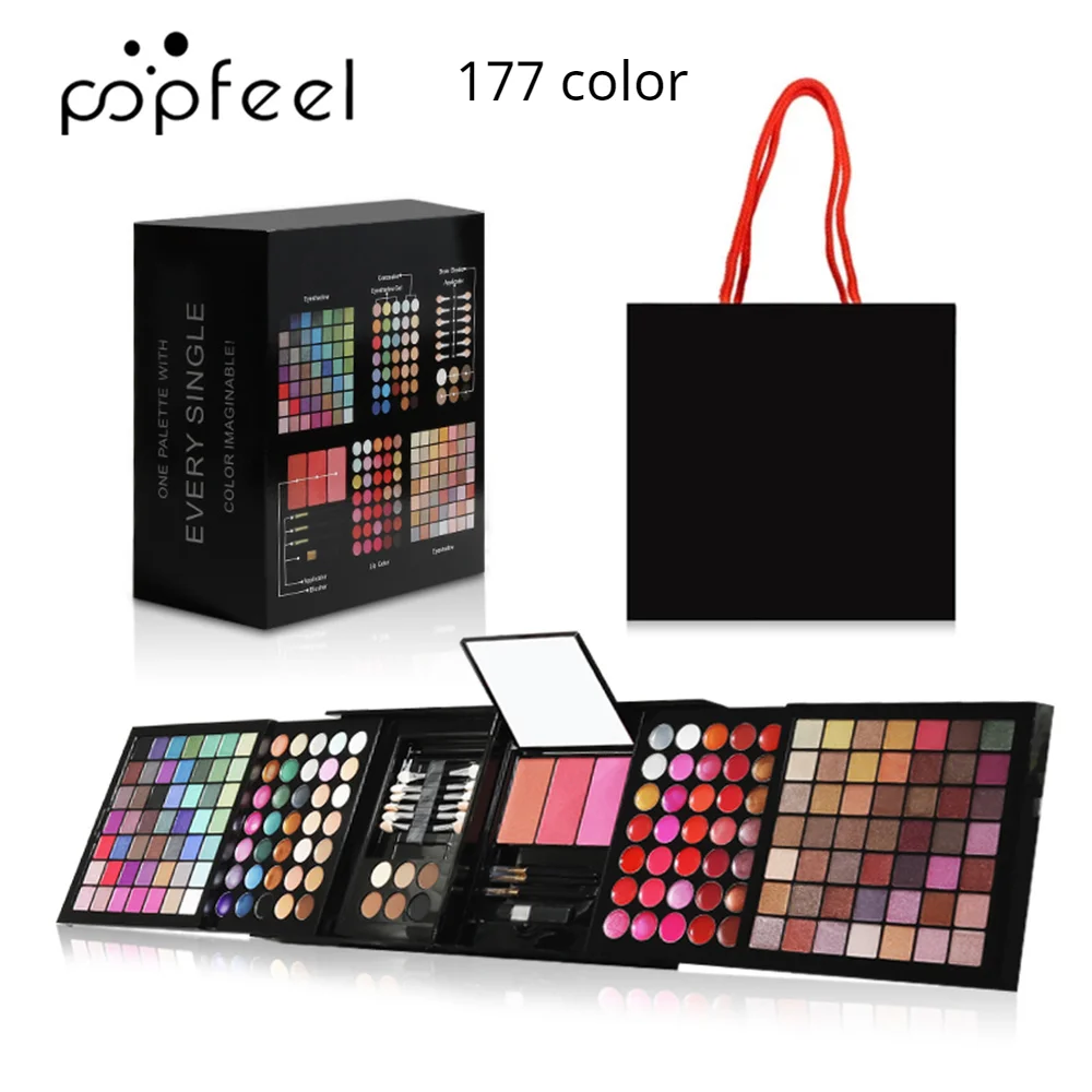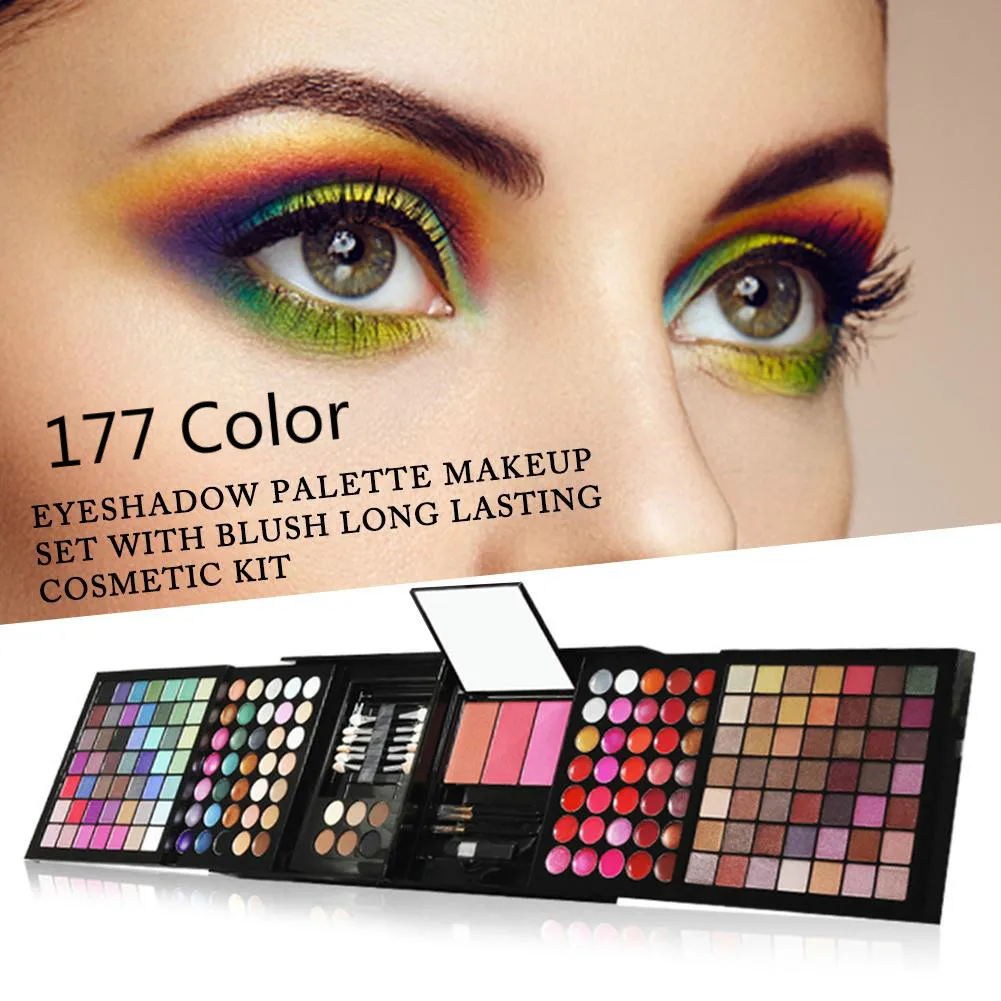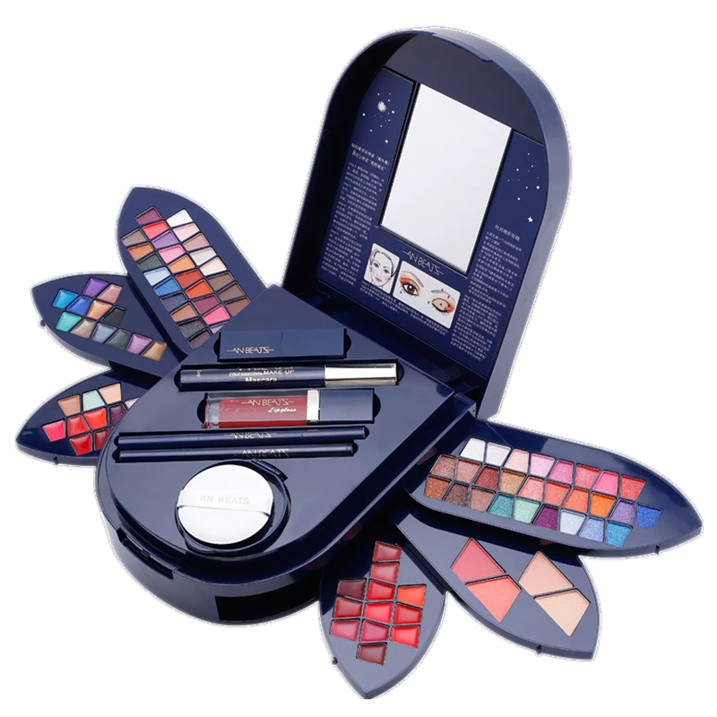 Набор для макияжа, высококачественный блеск для губ, подводка для глаз, тушь, румяна, пудра, стойкие водостойкие тени для век, бровей