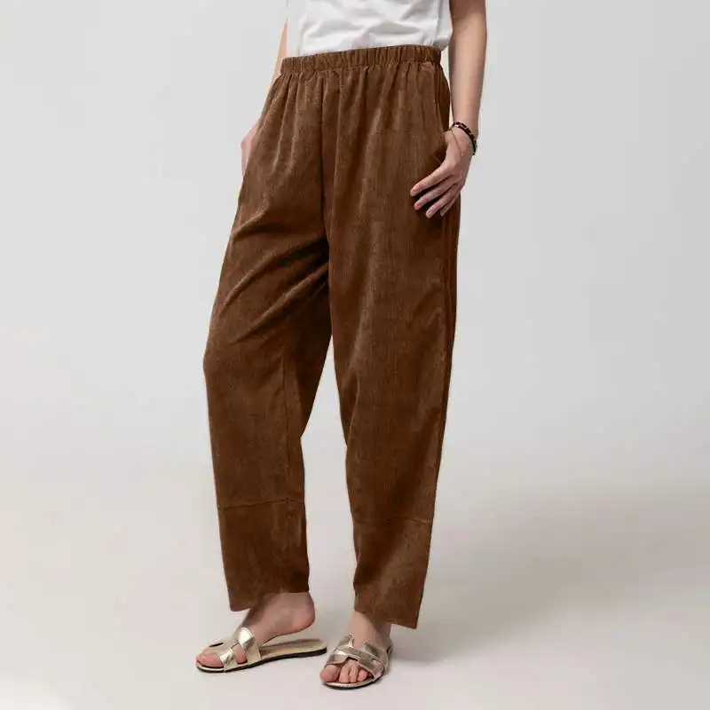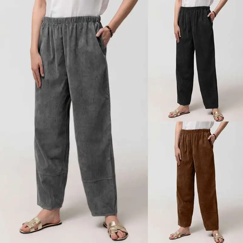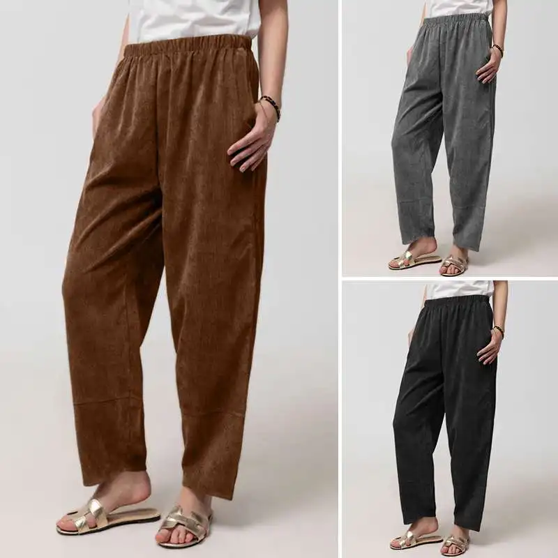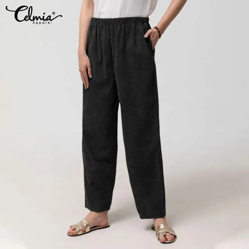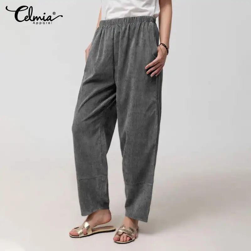 Женские винтажные вельветовые шаровары Celmia, модные повседневные свободные штаны с высоким эластичным поясом, длинные брюки 7, 2021