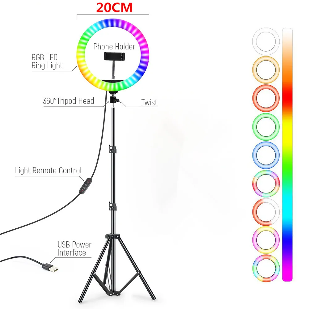 Кольцевой светильник RGB, 33 см, 26 см, со штативом 1,5 м