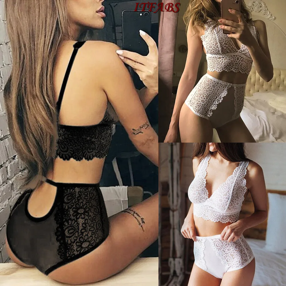 Комплект женского нижнего белья с вышивкой, бесшовный белый бюстгальтер пуш-ап с глубоким V-образным вырезом, прозрачное нижнее белье с высокой талией, размера плюс
