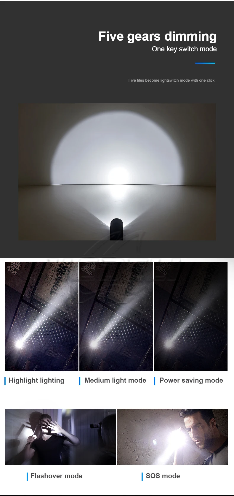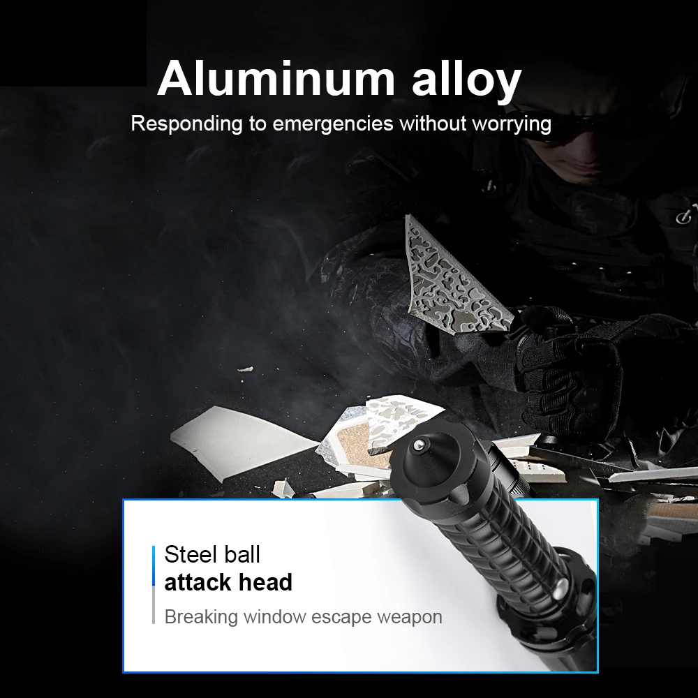 Бейсбольный тактический фонарь может использовать батареи двойного назначения 18650 / AAA, выдвижной фокус, острые углы корпуса фонарика могут самозащищаться, а дизайн абажура может сломать стекло.