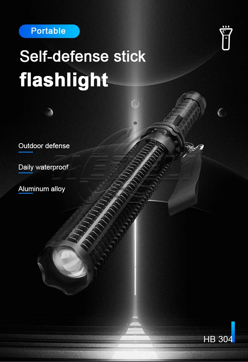 Наборы мощных зуммируемых T6 светодиодных фонарей, телескопическая палка для самообороны, тактическая дубинка, перезаряжаемый фонарик 18650