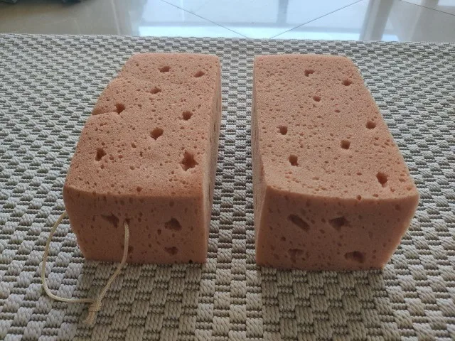 Губка нереально большая.Не удобная .Больше брать не буду.Материал какой то твёрдый.Я бы сказал очень плотный.В руке снимаешь как экспандер.Можно и машину мыть и кисть руки подкачать за одно.Серьезно кисть руки устаёт пока моешь.