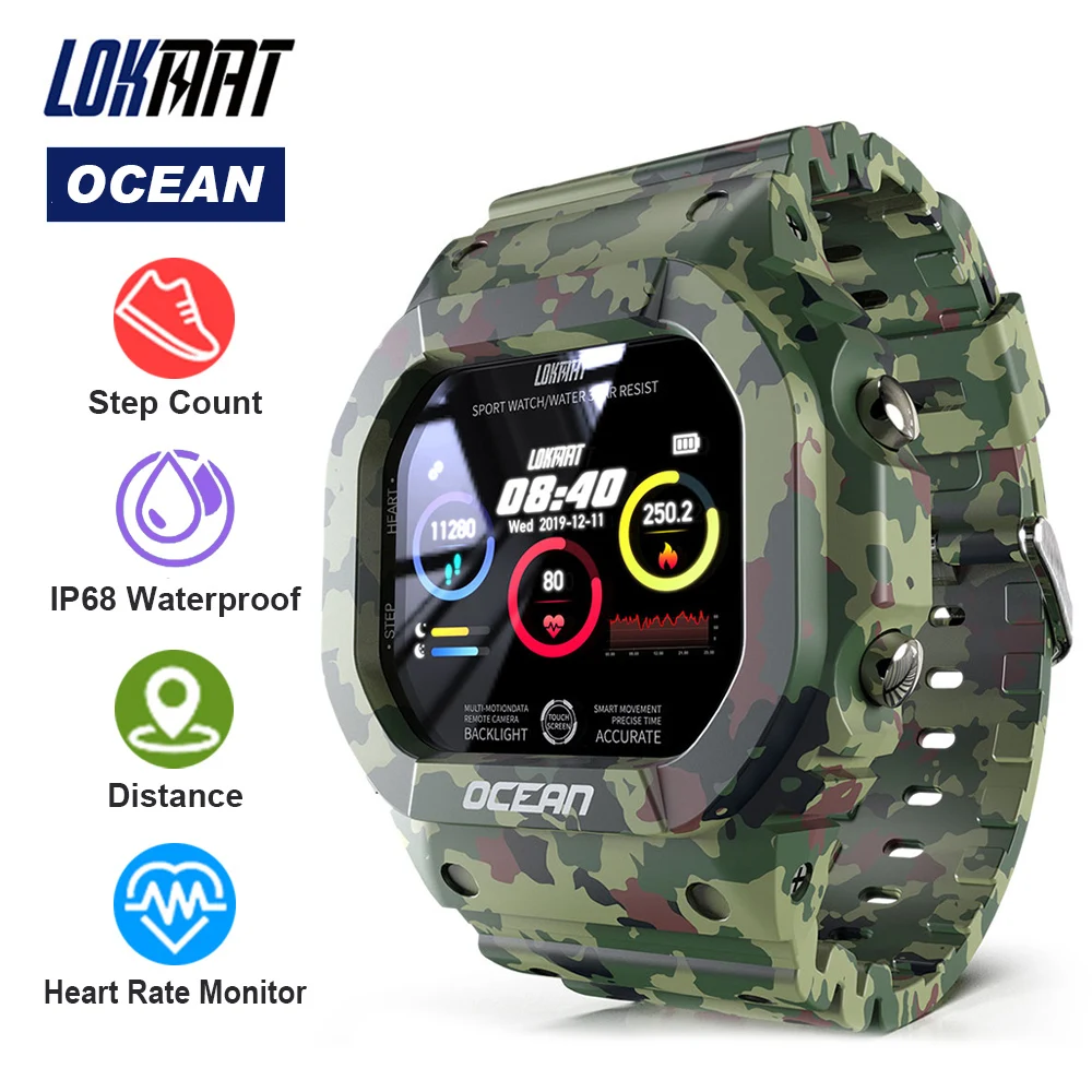 Смарт-часы LOKMAT Ocean мужские, фитнес-трекер, артериальное давление, водозащита IP68, дисплей 1,14 дюйма