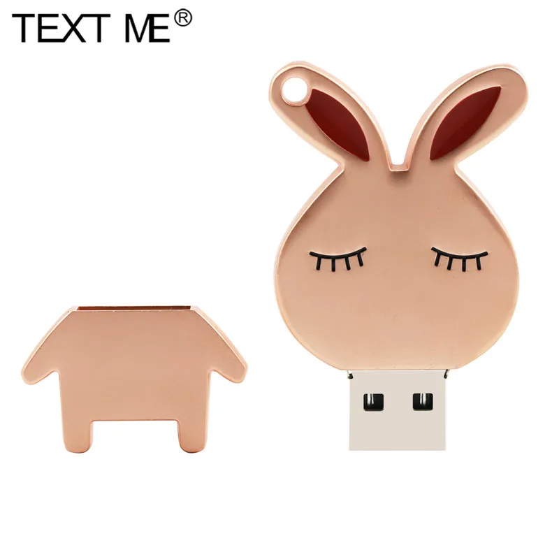USB флеш-накопитель TEXT ME милый мини-кролик, металлический корпус, 64 ГБ, 32 ГБ, 16 ГБ, 8 ГБ, 4 Гб, флешка 64, 32, 16, 8, 4 Гб
