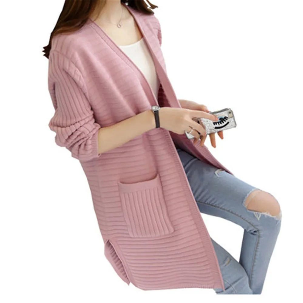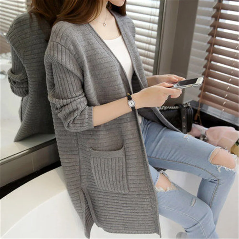 Кардиган женский вязаный, с V-образным вырезом и длинным рукавом, Осень-зима 2020
