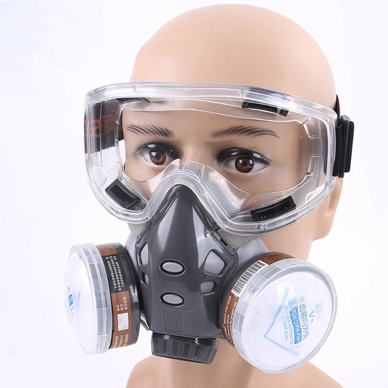Пылезащитная маска с защитными очками, Полнолицевая Защитная противогаз с фильтрами, многоразовый защитный респиратор с активированным углем