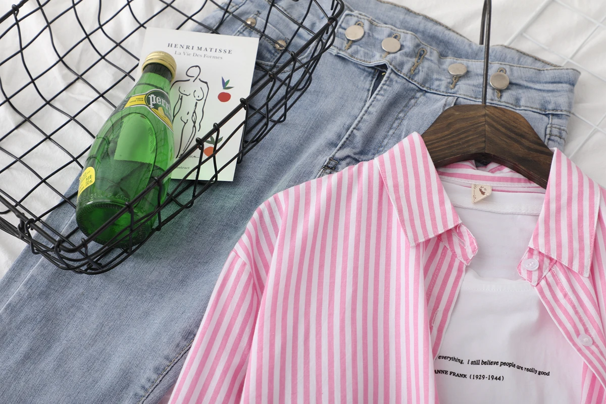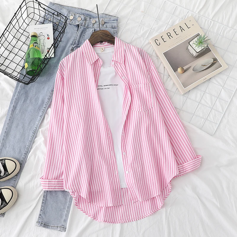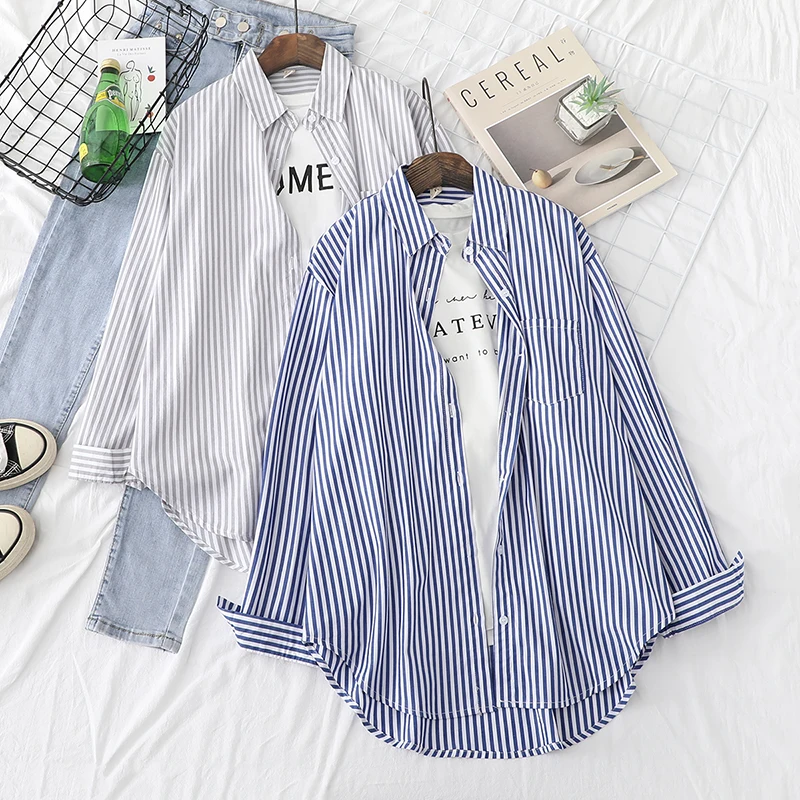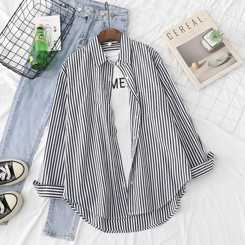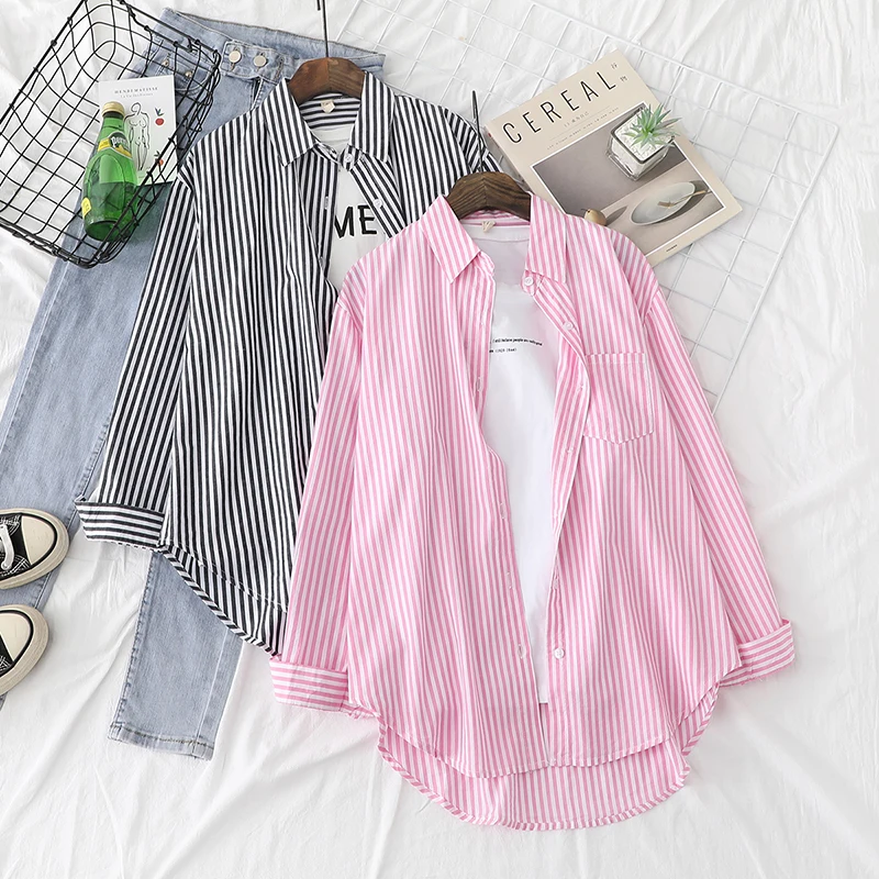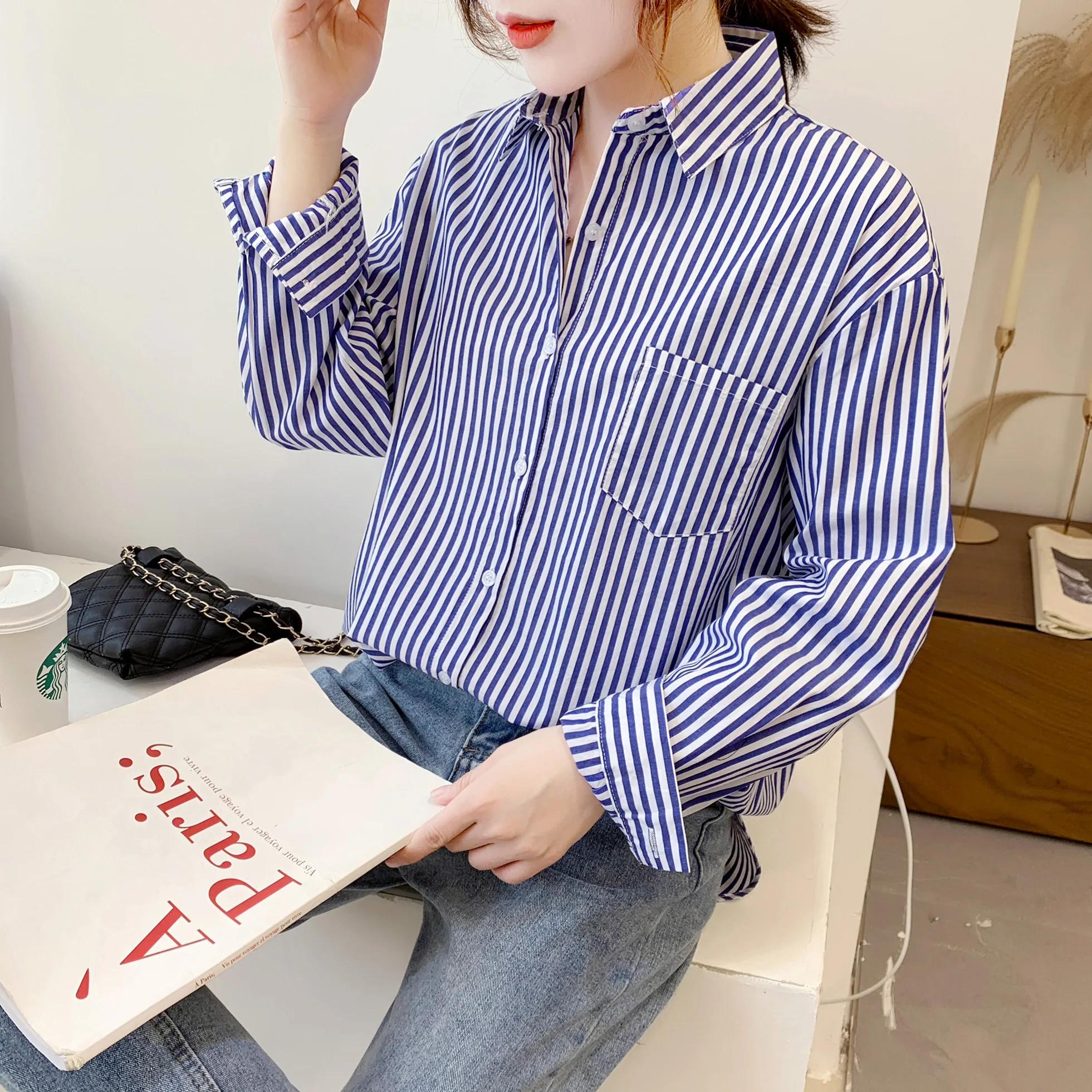 Женская блузка в полоску, с длинным рукавом, осень 2020