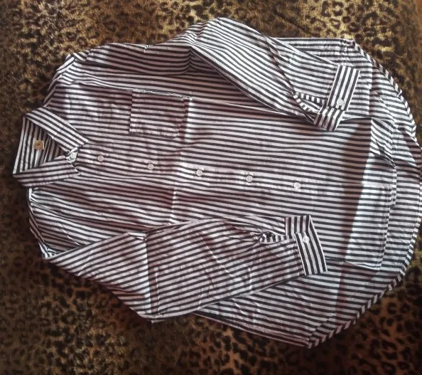 Отличная летняя рубашка. Ткань х/б. На российский 46 и рост 170 рукава коротковаты, как на 3/4, по ширине плеч широко, но скорее всего это такой фасон, свободный.