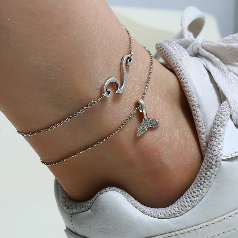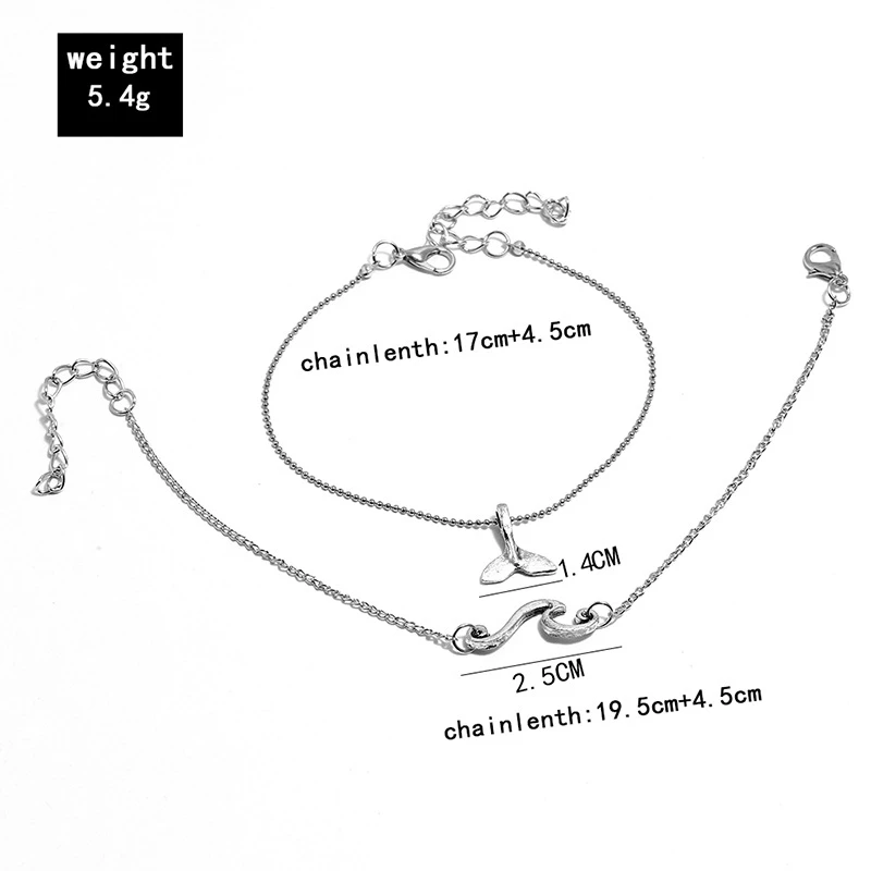 Браслет на ногу женский в богемном стиле, Пляжная цепочка на щиколотку с хвостом Кита, океанская волна, летнее Ювелирное Украшение