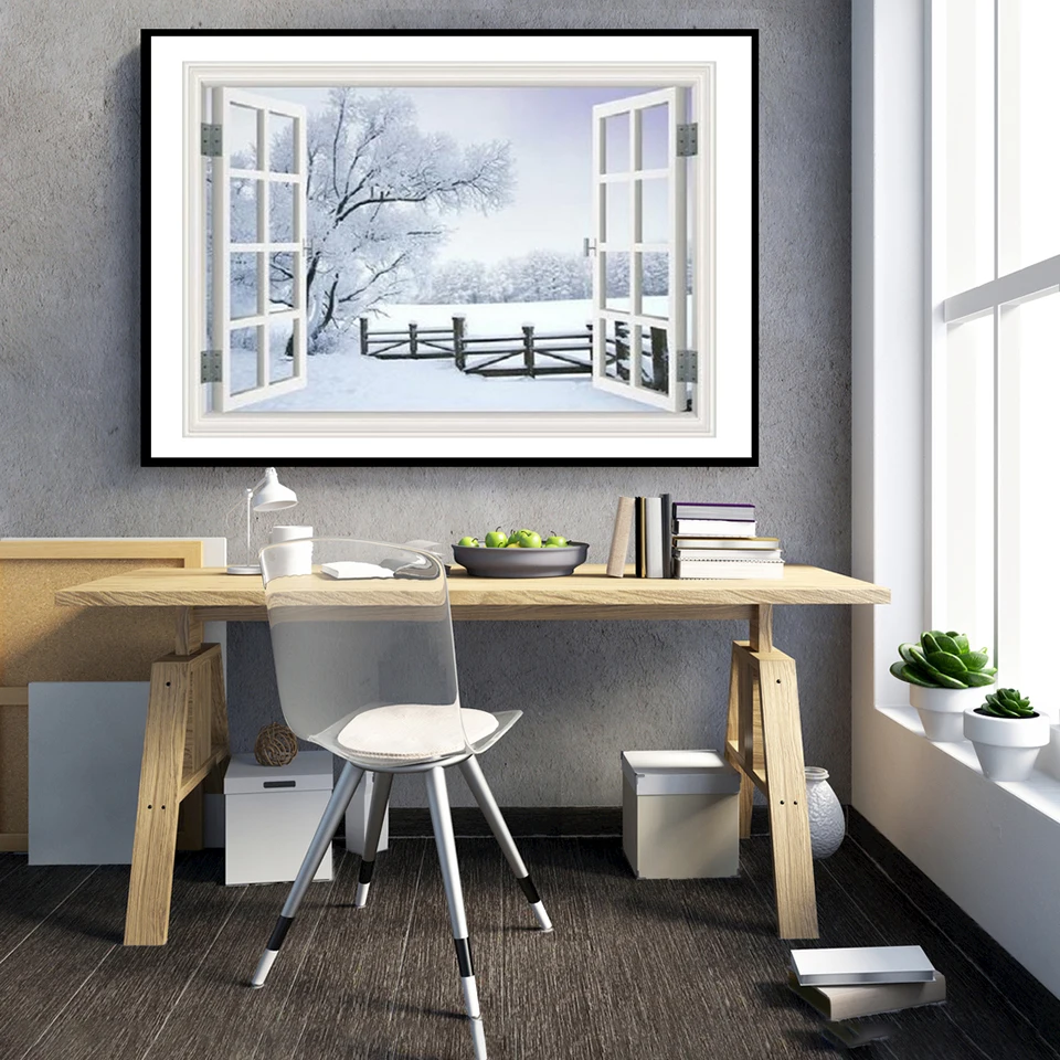 Набор для вышивки стразами 5D, квадратная картина из страз сделай сам с окном, пейзажем, видом на море, закатом, набор для украшения дома, Подарочная мозаика