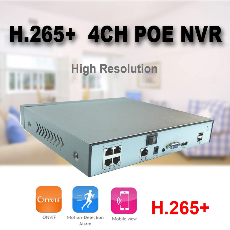 4CH POE 5.0MP POE IP NVR рекордер Сильный сетевой сервер; С P2P облачной функцией; Поддержка USB, мыши, резервного копирования; Поддержка Android,iphone,ipad,pc,cms view; Поддержка VGA выхода и HDMI выхода; Поддержка сигнала тревоги, сигнала тревоги; С H.265 высокой эффективности сжатия видео; Интерфейс HDD: SATA, поддержка между 500 ГБ и 8 ТБ; Многоязычное меню до 28 видов языков (английский, финский, французский, немецкий, греческий итальянский, японский, польский, португальский, русский, испанский, тайский, китайский, традиционный китайский, турция и т. Д.); * Поддержка 5.0MP входных камер и HDMI и VGA выход; * Облачный сервис P2P для мобильных устройств Android/iOS, удаленный просмотр в любом месте в любое время; * Запись обнаружения движения. NVR будет срабатывать для записи, когда обнаружите что-то движущееся. Нет триггера, нет записи, более интеллектуальный и компактный; * Оповещение по электронной почте и оповещение о тревоге. При срабатывании обнаружения движения NVR автоматически отправляет звуковой сигнал и уведомления о тревоге на вашу электронную почту, включая моментальный снимок на месте; * Несколько способов доступа к ПК, телефону и планшету, может быть просмотрен ПК клиентом, приложением телефона и IE, хром, Firefox, браузер; * Поддержка 3,5 дюймового жесткого диска SATA (опционально), менее 500G не поддерживается. HD CCTV POE NVR цифровой видеорегистратор, поддержка всех 1.0mp & 2.0mp & 3.0mp & 4.0mp & 5mp ip-камера Посетите удаленно через облако или приложение XMEye Простота установки и подключения