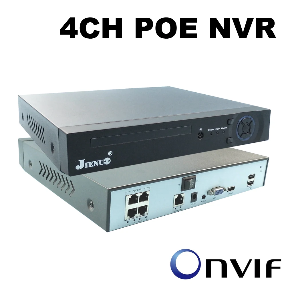 JIENUO 4CH POE NVR CCTV видеонаблюдения HD 4 канала 48 В 802.3af система сетевой видеорегистратор для 4MP 5MP Onvif IP камеры