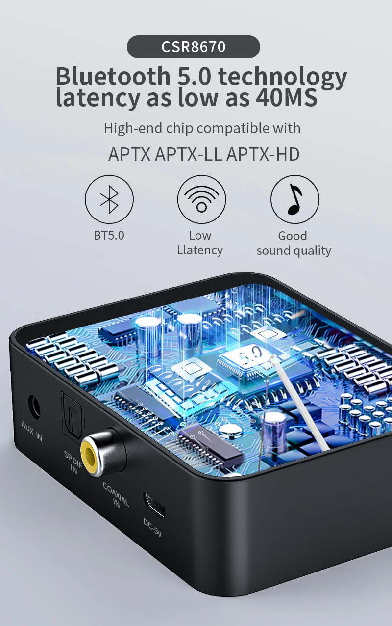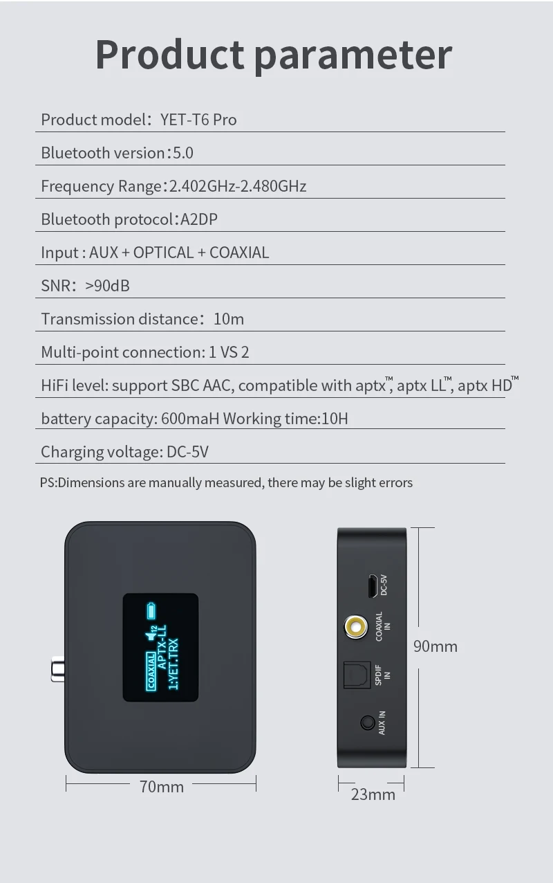 VAORLO OLED дисплей CSR 5,0 Bluetooth аудио передатчик APTX-HDLL SPDIF + коаксиальный + 3,5 мм AUX беспроводной адаптер для ТВ ПК