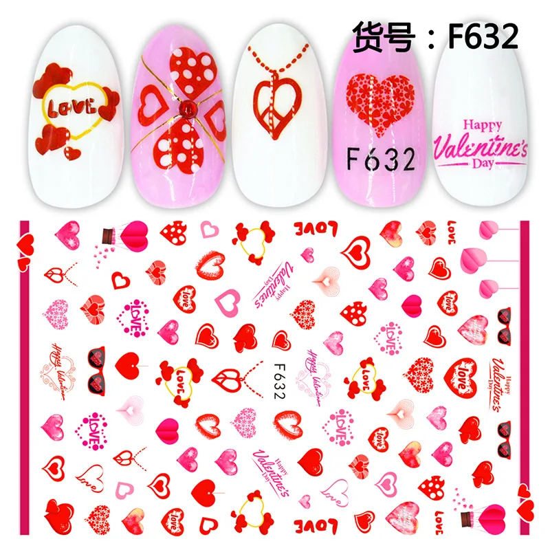 3D наклейки для ногтей Love Kiss, красное сердце, красные губы, День Святого Валентина, наклейки для дизайна ногтей, свадебное украшение для ногтей, инструменты для ногтей