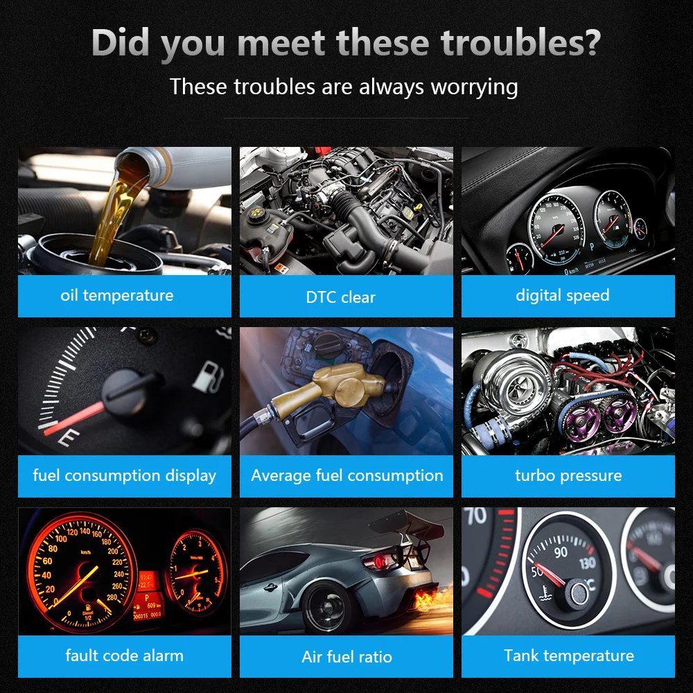 • Подключи и работай: оснащен кабелем OBD• Реальный 2,6 "TFT LCD многоцветный смарт-дисплей• Первое сканирование покажет протокол транспортного средства• Добавить новые функции: ускорение конкурентного режима, испытание тормозов, возможность считывания всей информации о потоке данных автомобиля.• Богатое содержание:Скорость транспортного средства, об/мин двигателя, температура воды, перегрев масла, давление впуска, напряжение, мгновенный расход топлива, средний расход топлива, измерение расстояния вождения, вождение Время, Сигнализация низкого напряжения, сигнализация с высокой температурой воды, сигнализация с превышением скорости, сигнализация с кодом неисправности двигателя, устранение кода неисправности, свободное переключение между километрами и Майлс• Многофункциональный режим отображения или простой режим отображения функций можно свободно переключать, чтобы показать вышеуказанное содержимое• Двухскоростной блок: MPH и KMH переключатель свободноПожалуйста, внимательно прочитайте перед размещением заказа: