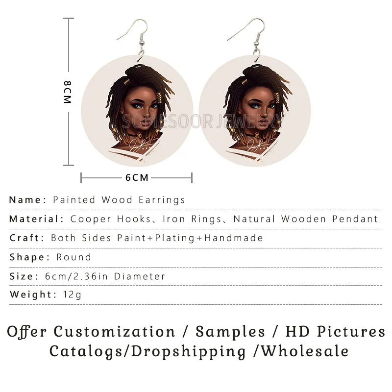 SOMESOOR меланин поппин королева вьющиеся деревянные висячие серьги...