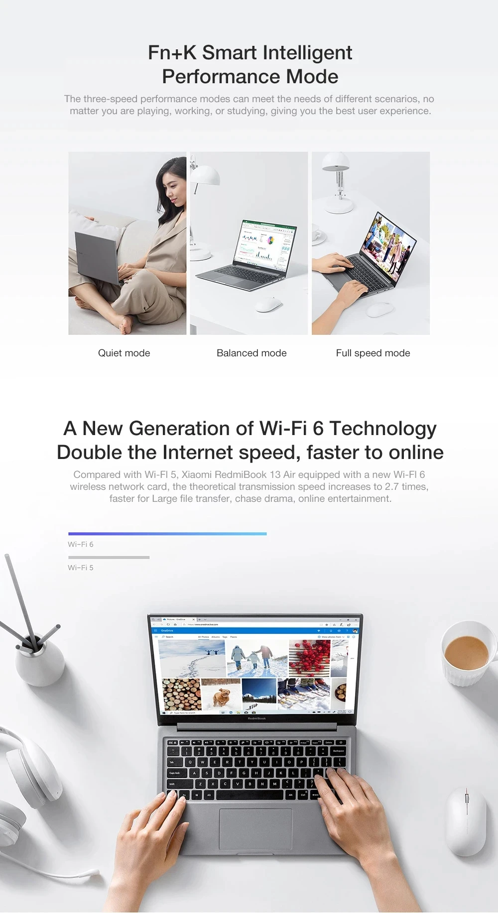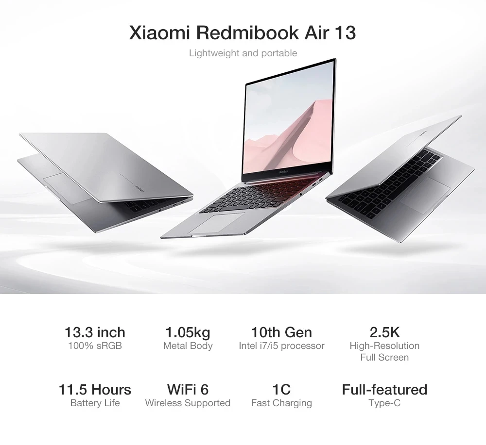 Бренд: XiaomiНомер модели: RedmiBook Air 13Классификация: ноутбукМатериал задней крышки: ABS + PCВремя работы от аккумулятора (до): 9 часов время воспроизведения видеоТип батареи: литий-ионный полимерный аккумуляторМикрофон: поддерживается