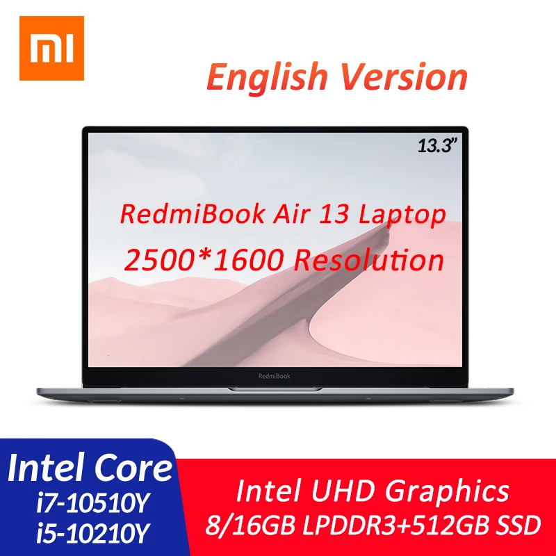 Оригинальный ноутбук Xiaomi RedmiBook Air 13, ультрабук 13,3 дюйма, i7-10510Y дюйма, 16 ГБ, 8 ГБ, DDR4, i5-10210Y ГБ, SSD 512 K, 2,5 sRGB, ноутбук
