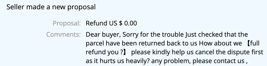 Товар никогда не ушёл из Китая. Наконец-то я получил информацию с помощью отслеживания (продавец не связался со мной; Мне нужно было их отследить). Затем продавец предлагает вернуть только 80% от суммы, которую я заплатил. Я подняла спор. Продавец пообещал иметь дело со мной «офлайн» через PayPal для возврата денег. Я договорился, но они перешагнули меня. Спор (снова, больше времени потрачено впустую). Но робот AliExpress не может прочитать отслеживание и претензии, что товары находятся в пути. Это не так. Даже Продавец подтверждает, что они никогда не покидали Китай. Чрезвычайно нечестный продавец и сломанная система споров AliExpress.