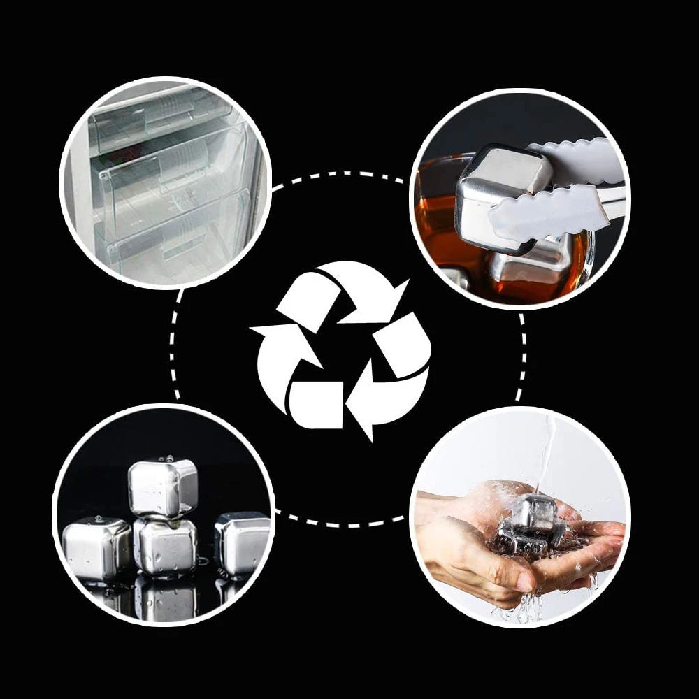 Кубики льда из нержавеющей стали, многоразовые кубики льда с щипцам...