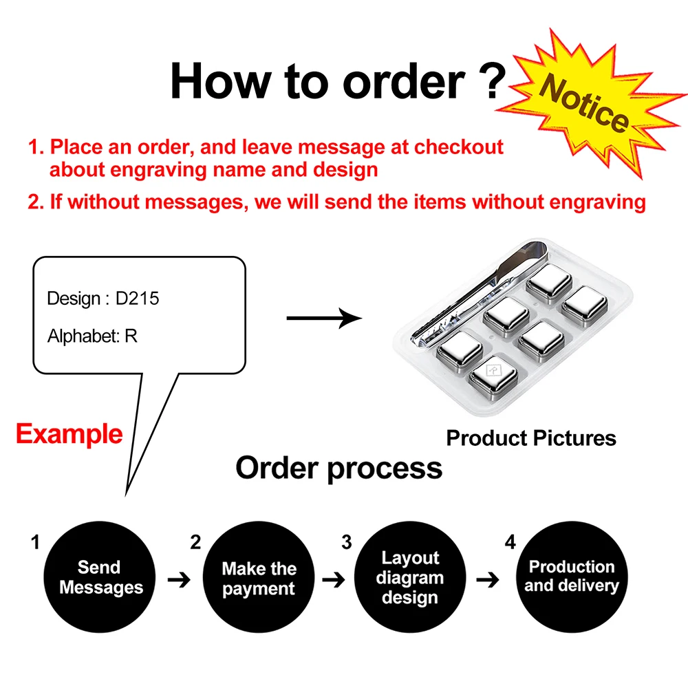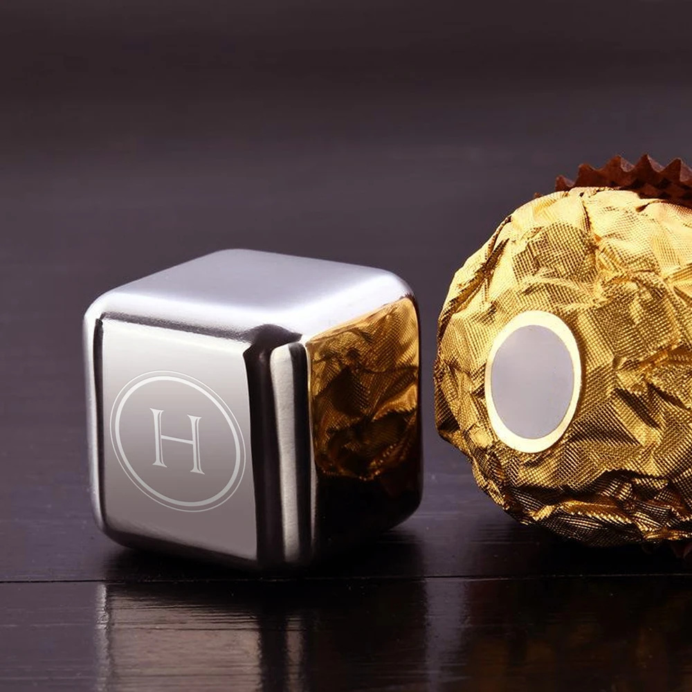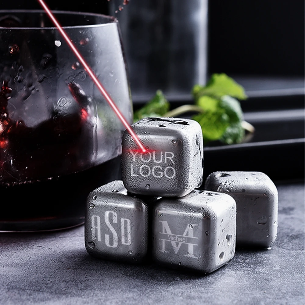 Подгоняемый камень для виски из нержавеющей стали, гравированные металлические камни для виски, кубики для льда, многоразовые камни для напитков, для охлаждения с щипцами