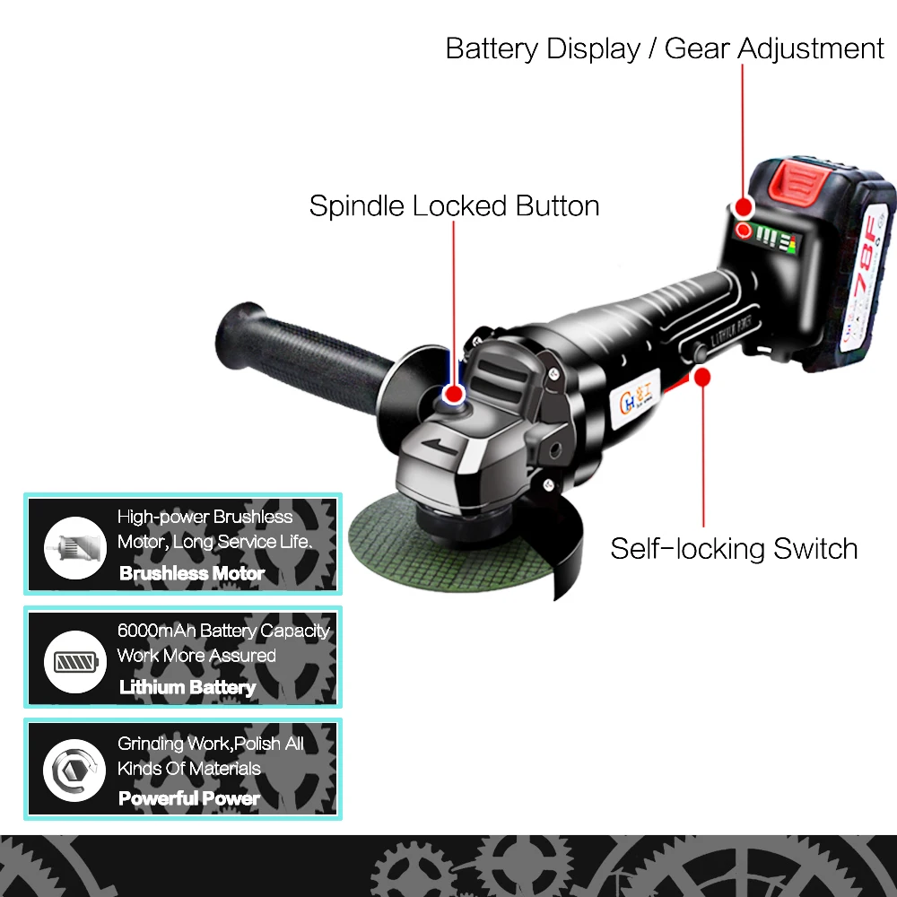 Беспроводная угловая шлифовальная машина, 20 в, литий-ионный аккумулятор 6000 мАч, режущее устройство, Электрический точильный инструмент для дома сделай сам