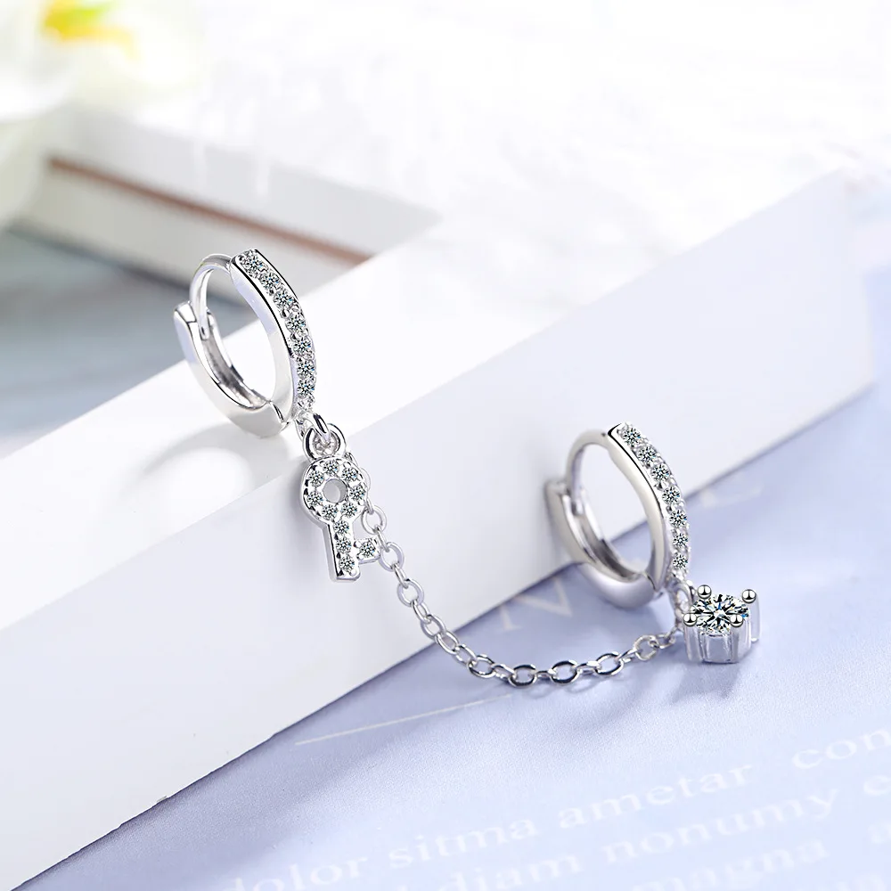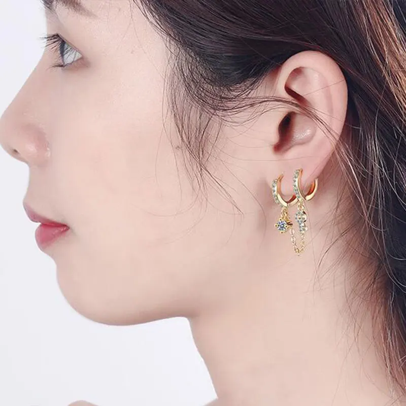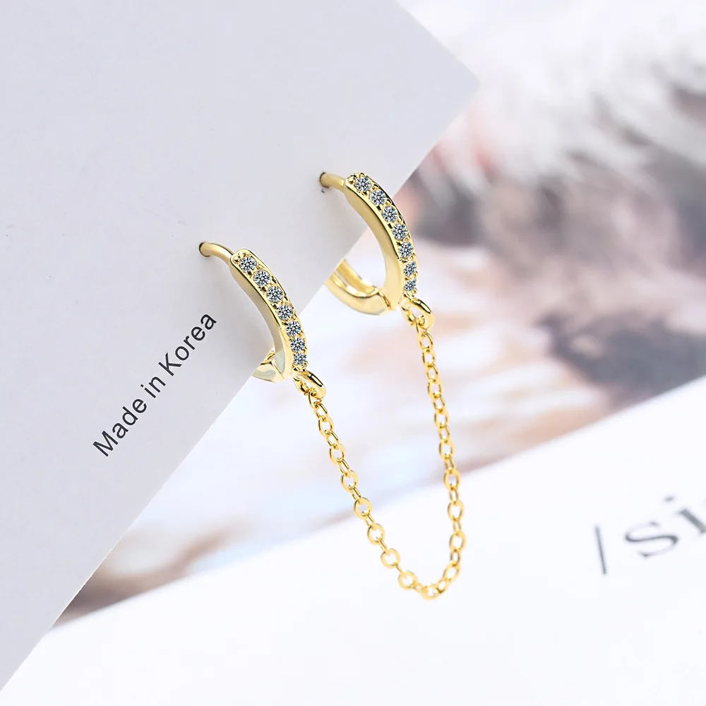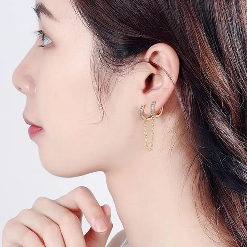 Серьги-кольца для пирсинга с двумя отверстиями для ушей для женщин, серьги-гвоздики, богемная цепочка, женские серьги с кисточками, простые серьги-капельки, ювелирные изделия с кристаллами