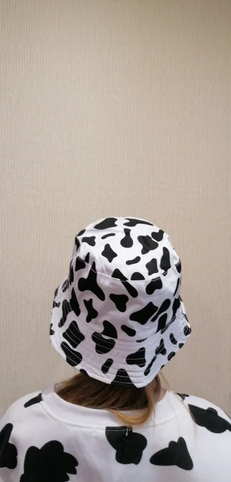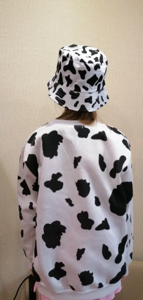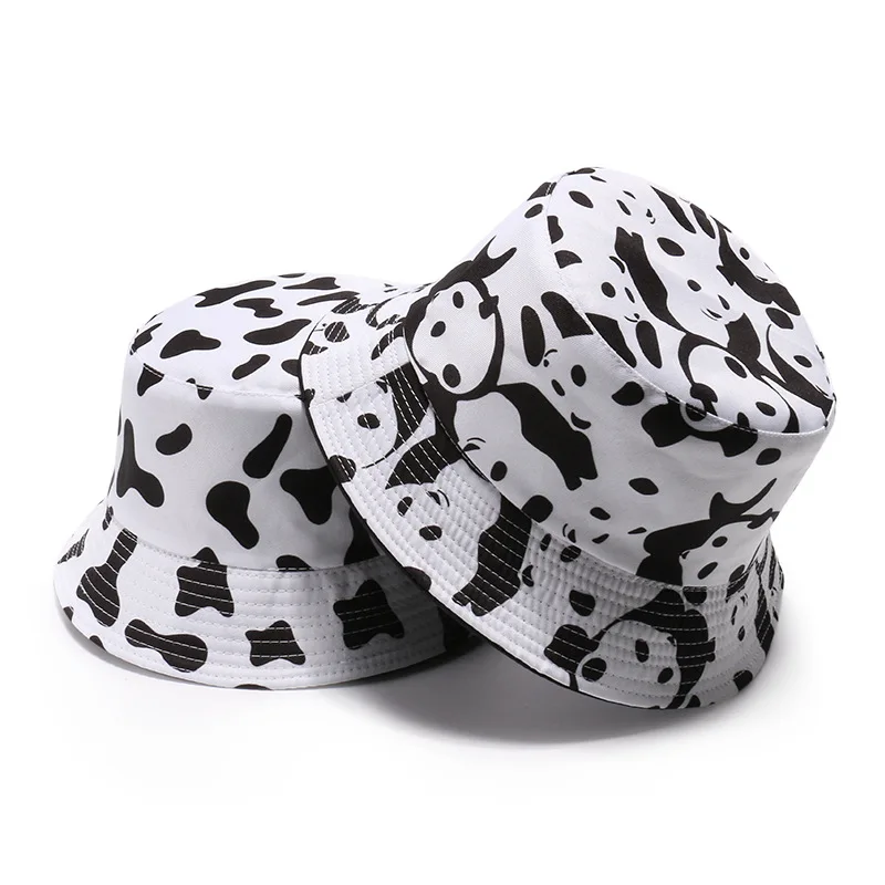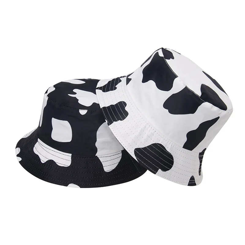 Панама Двусторонняя унисекс, модная шляпа от солнца, с коровьим принтом, в стиле хип-хоп, чернаябелая