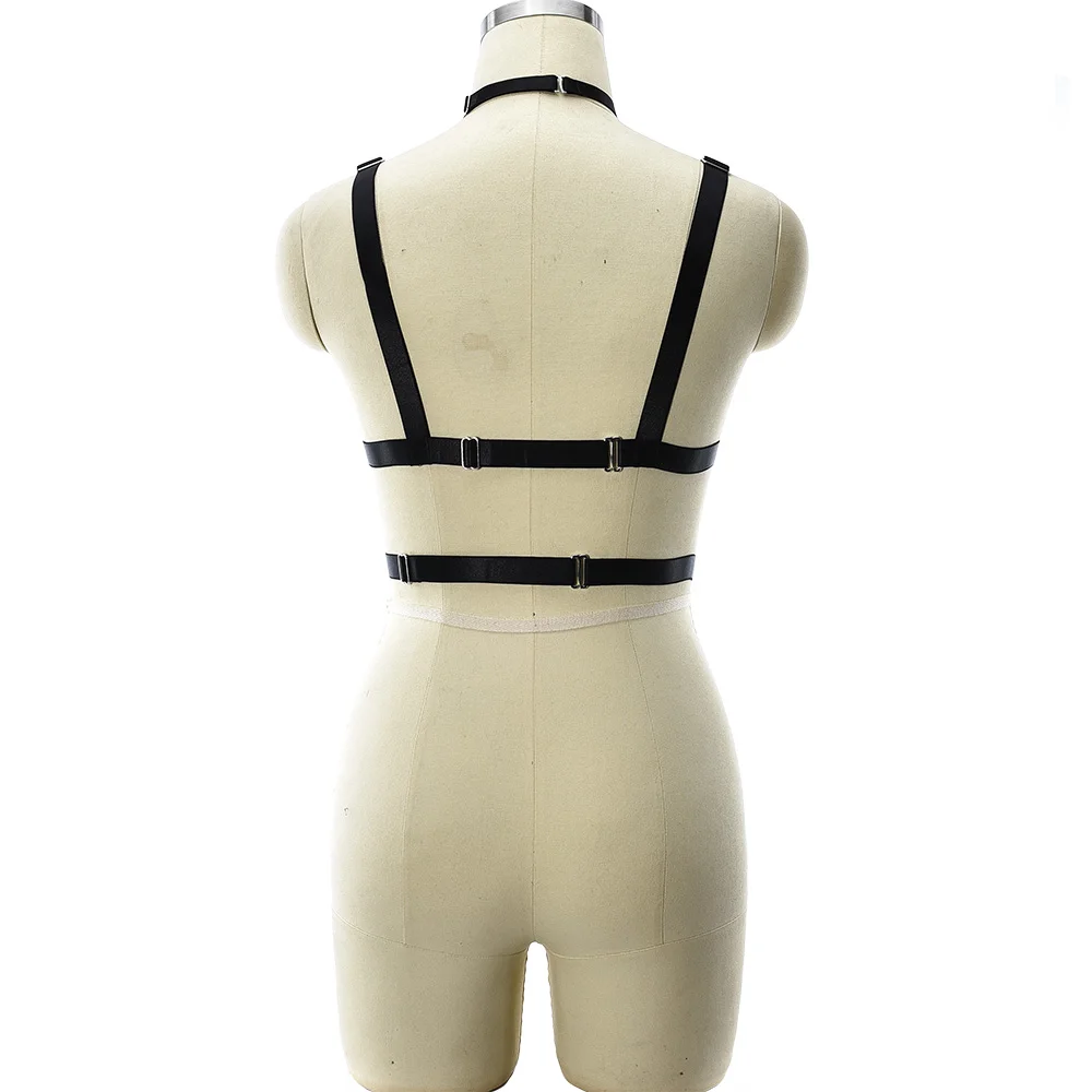 Пояс с подвязками для ног, чулки, черный бюстгальтер с открытой грудью, готическое сексуальное нижнее белье комплект, танцевальная одежда, боди, Женское боди, портупея для тела, клетка